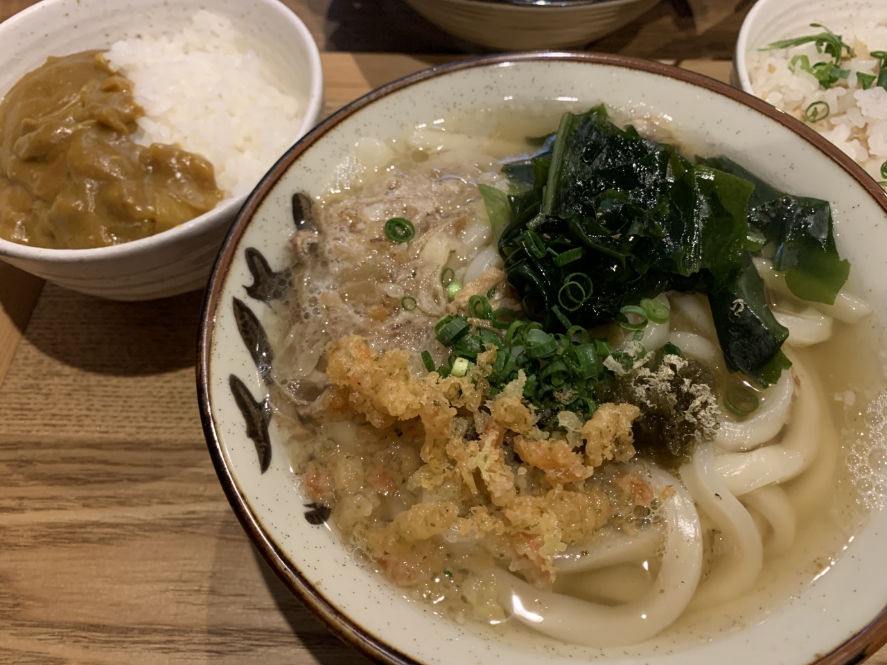 JR南武線尻手駅から徒歩5分くらい、川崎幸市場(南部市場)内にあるうどん屋です。ただのうどん屋ではなく、大阪発祥の「かすうどん」を供する珍しい店です。大阪・南河内地方で昔ながらに親しまれてきた牛ホルモン(=油かす)を油で揚げたものが入っており、その旨味と歯応えがクセになります。営業時間は短く、日曜祝日はお休みですのでご注意を。