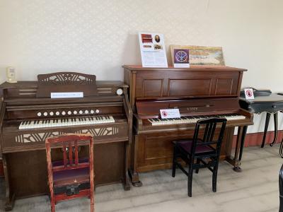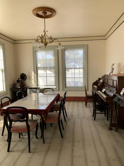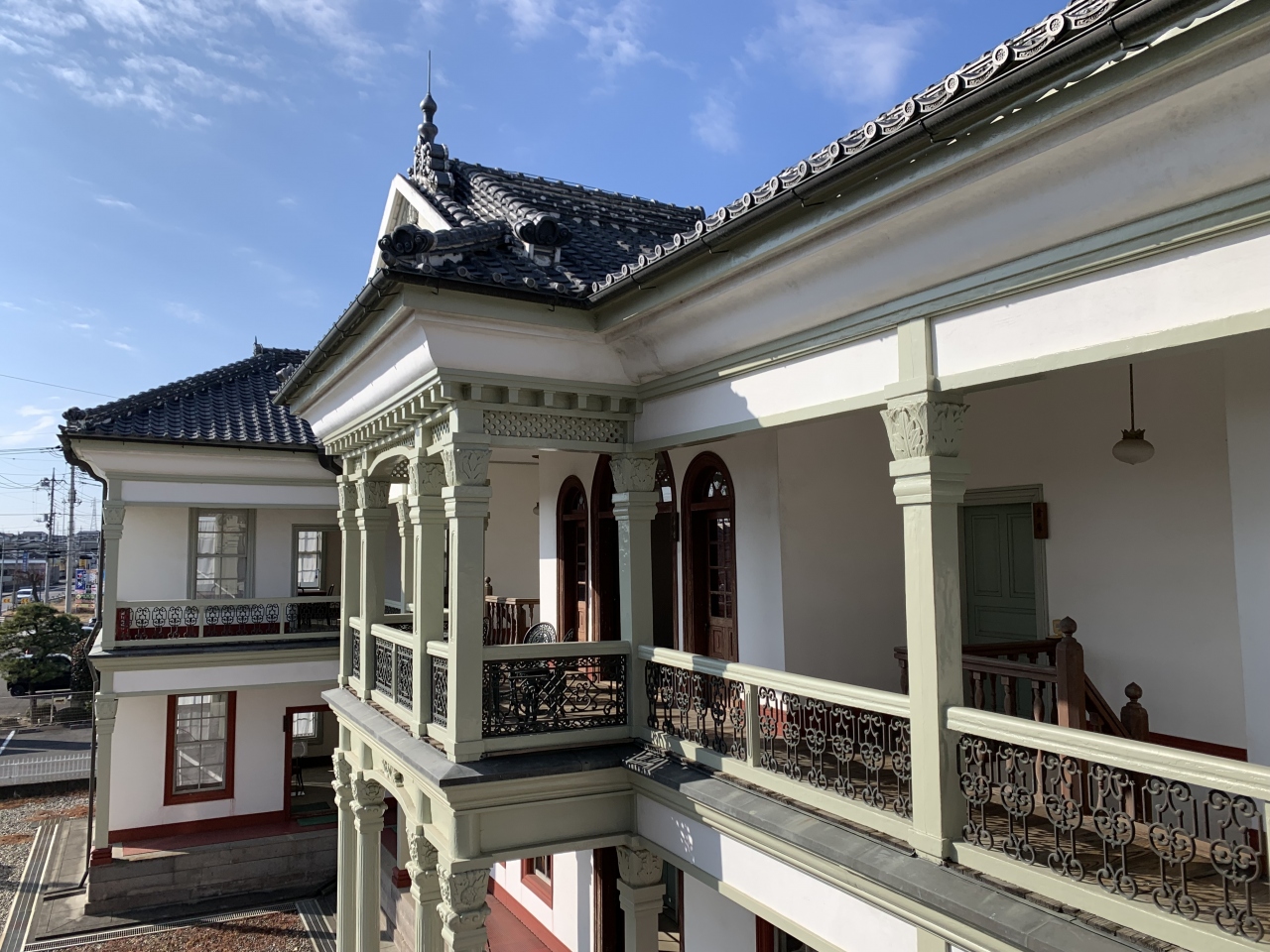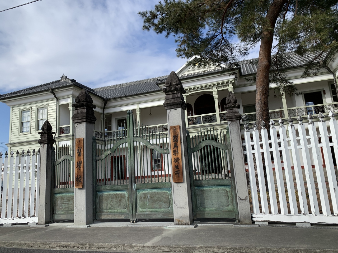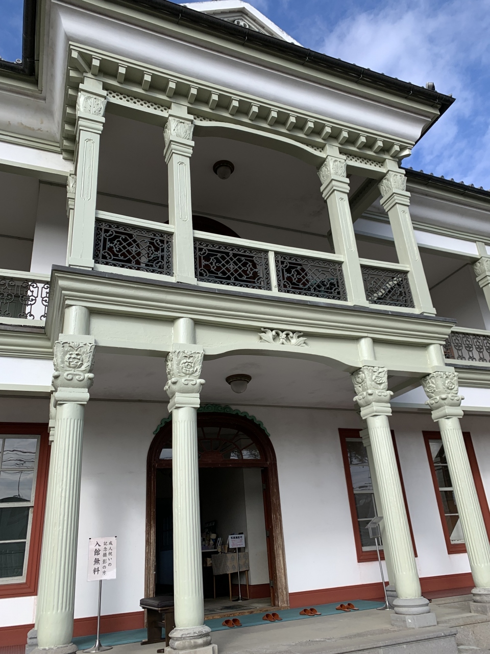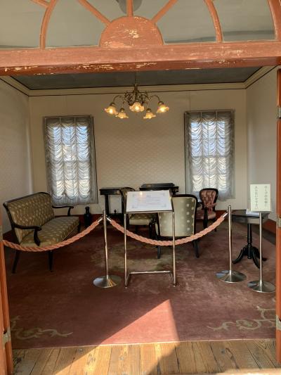 桐生の中心街からは3kmほど西に離れた場所にあります。小屋の組み方は和風で、外観の装飾を洋風っぽくする擬洋風建物だそうです。「成人祝いの記念撮影の方は入館無料」の看板がありました。桐生明治館の沿革など。この建物は、明治11年(1878年)に前橋に群馬県衛生所として建てられましたが、その後経営不振で昭和3年(1928年)にこの場所(旧山田郡相生村)に役場として払い下げられました。産業遺産ではなく、権力者や豪商の邸宅などでは無かったので豪華絢爛という感じではありませんが、地方自治体の役場だったということで迎賓館的な趣はあります。面白かったのは蓄音機での音楽鑑賞、スタッフの方が美空ひばりさんの「越後獅子の歌」、昭和25年(1950年)の松竹映画「とんぼ返り道中」の主題歌のレコードをかけてくれました。