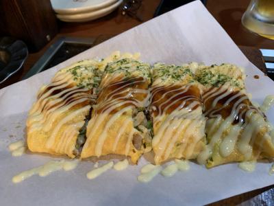 JR川崎駅から徒歩4~5分のお好み焼きです。川崎駅周辺のお好み焼き(&もんじゃ)ではここが一番だと思います。店内は大阪の昭和の下町風な演出。お好み焼きは自分で焼くのではなく焼いて持って来てくれるスタイル。プロが焼くので楽ちんかつ美味い。「明太もちチーズもんじゃ」「ぼちぼち焼き」「とろグラ焼き」あたりがいつも頼んでいた定番、焼きそばも種類があって美味い。今年(2022年)に入って、ランチタイムは名古屋の台湾まぜそば有名店「はなび」とのコラボが始まってます。