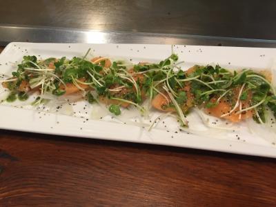 JR川崎駅西口から徒歩で10分足らずの静かな通りにあるイタリアン(シチリア料理)レストランです。先に結論を言うと最高のレストラン、近くに住んでいた頃はディナーで何回か通いました。高級店のような奇をてらったものでなく、トラットリアの名が示すように本場イタリア(南部シチリア方面)の大衆食堂で出るようなホントに美味いメニューを、ちょっとオシャレに盛ってコース風に出してくれます。ワインも美味しいです。いつも予約は席だけを取って、ボリューム多めか少なめを伝えてメニューは基本お任せでした。今回紹介するメニューは一例ですが、何が出てくるのかいつも楽しみ。スタッフの対応や店内の雰囲気で若干つかみどころのない感がありますが、イタリアがわかる人なら難なく親しみを持てる店です。
