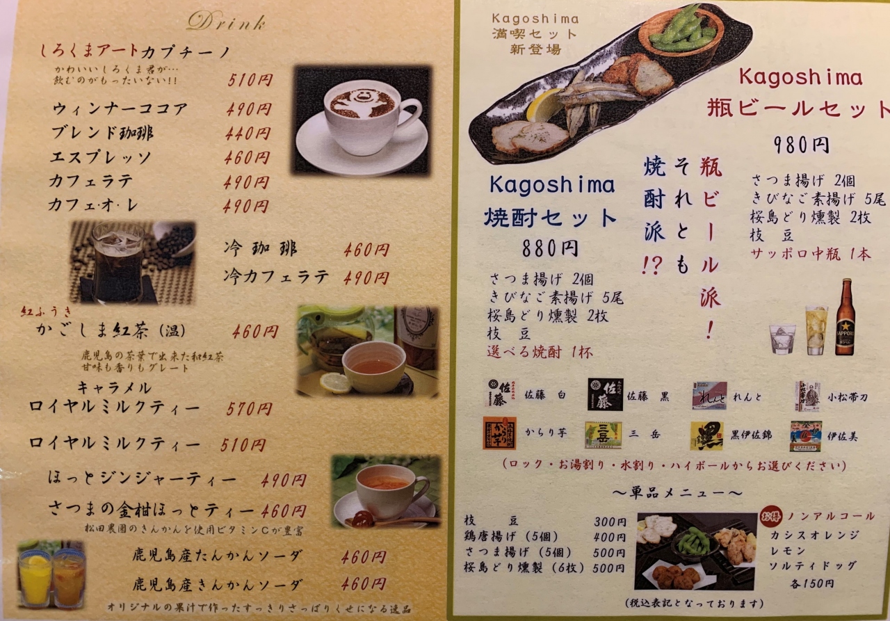 「天文館むじゃき 本店」内にある、氷菓子”白熊”で有名な店です。広々した1Fの「白熊珈琲」で”白熊”と”しろくまアートカプチーノ”をオーダー。上から見ると確かに、チェリー、アンゼリカ、干しぶどうの配置が白熊の表情でした。1947年に創始者の久保武氏によって考案されたという、さっぱりとしたミルキーなかき氷はやはり抜群のうまさでした。