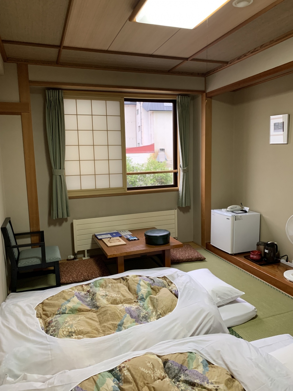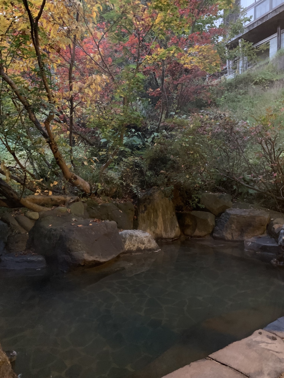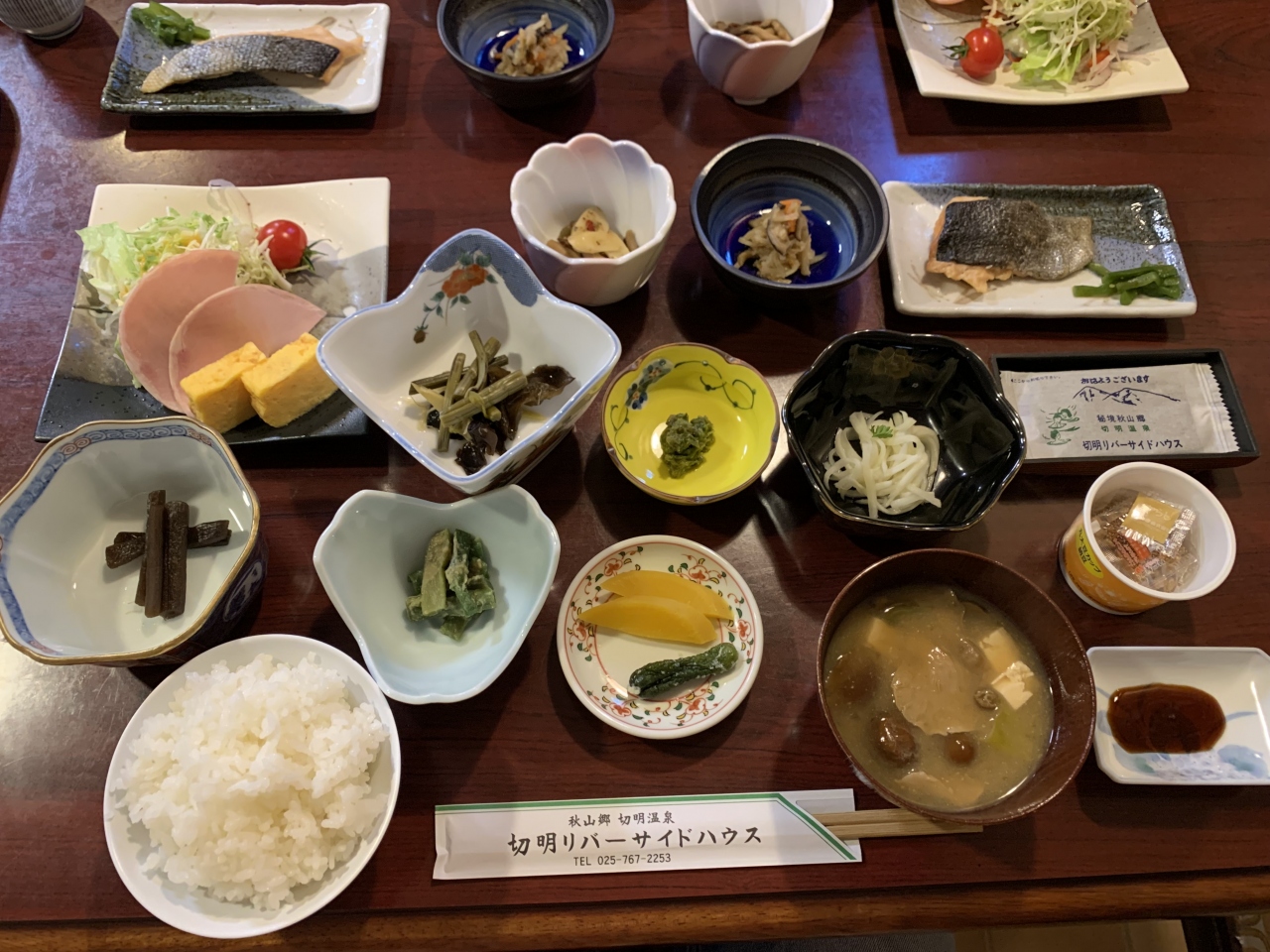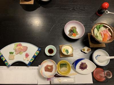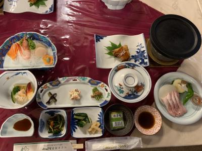松之山温泉街にある全5室のこじんまりした旅館です。築60年以上の木造旅館で良い雰囲気、客室は広く(「情泉」という通りに面した居間10帖+寝間10帖ツインの客室)、リノベートされていてすごく快適でした。温泉は源泉かけ流し2つと循環ろ過併用3つの計5つの風呂があり、男性の露天は庭園の紅葉を見ながら入れるちょっと熱めの湯で良かったです。全5室なので風呂は混みあうことはありませんでした。(ちなみに、私たちの訪問時は男女別&貸切でしたが令和3年12月以降はすべて無料貸切になっている模様) 食事は、棚田米や山菜、鯉のあらい、鯉こくなど、地の物や郷土の物にこだわる美味しくヘルシーな手作り料理が楽しめました。やはりこれくらいの規模でもてなしが行き届く...まさに丁度よいと感じさせてくれる宿です。