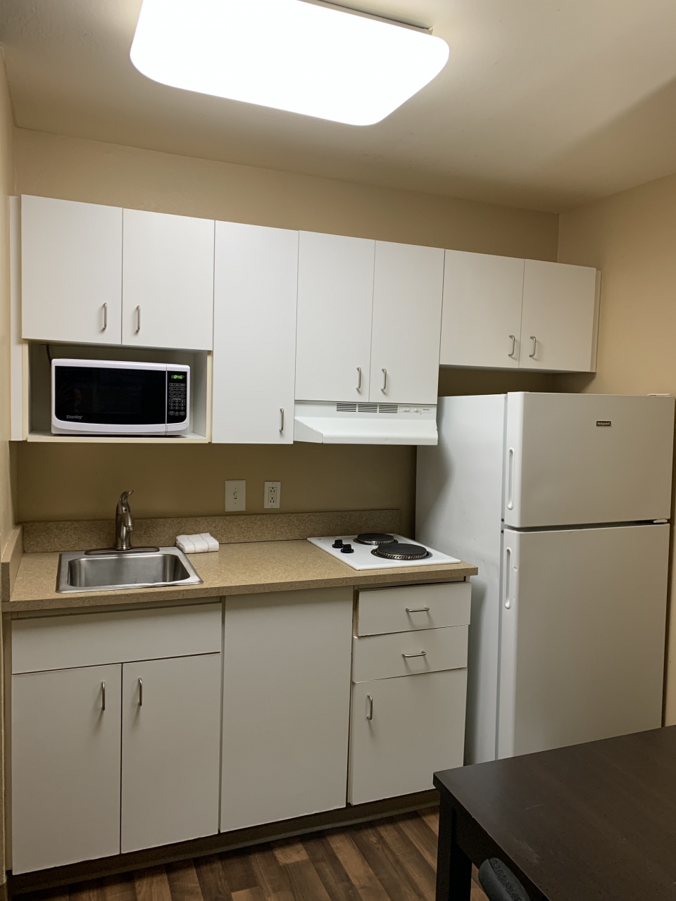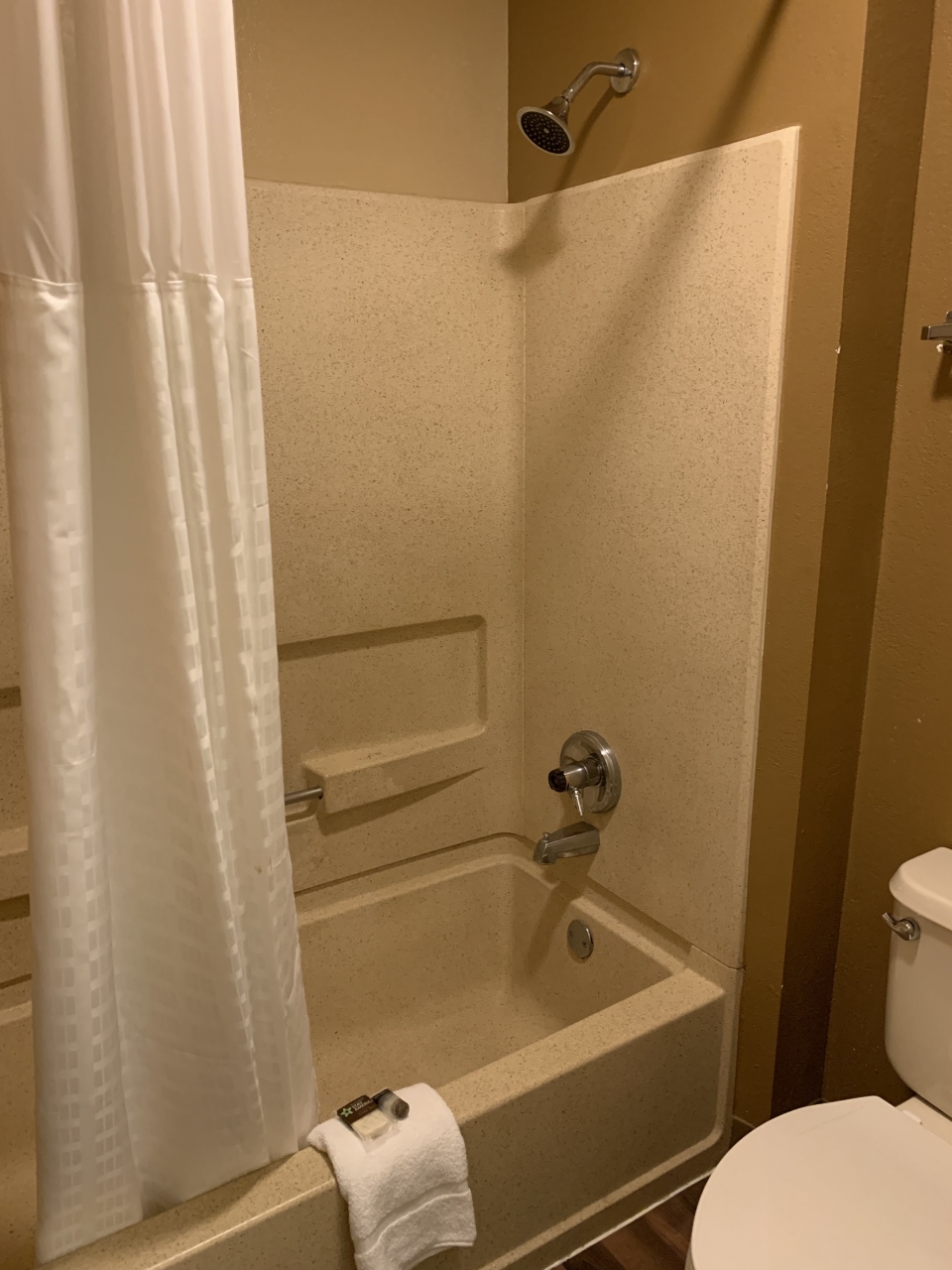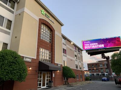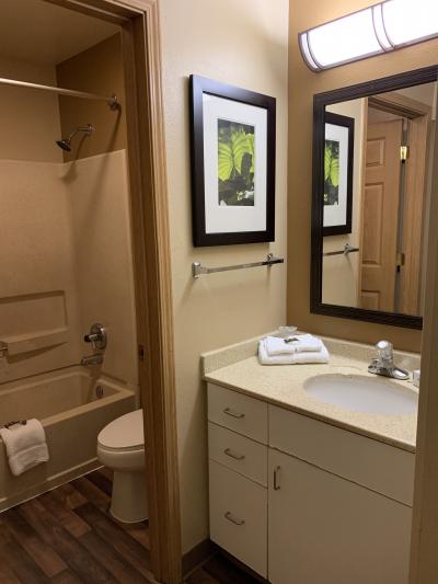 アトランタのバックヘッド地区にある、エクステンデッドステイアメリカチェーンのホテルです。外観はすっきりして新しめなのかと思いきや、客室は結構古い感じでした。キッチンもある広めの部屋でエアコンはちゃんと効き、シャワーのお湯も弱めながらもちゃんと出たのは良いとして、アメニティが貧弱すぎました。(タオルは小さい、シャンプーが1ボトルで2人で使ったらギリギリ、石鹸が臭いし泡立たない)ドライヤーもなし。朝食付きとありましたが、コーヒーとマフィンだけです。しかもマフィンは棚にしまってあったのを見つけ出しました。今のアトランタでこの料金(100ドルちょっと)ならまぁこんなもんなのでしょうか。