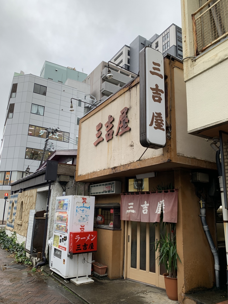“新潟あっさり醤油ラーメン”の代表格の三吉屋、その本店です。循環観光バスなら「東堀通六番町(マンガの家入口)」バス停から近いです。「古町花街入口」バス停でもそう遠くはありません。60年余の歴史を持つ老舗、始まったのは屋台ということですが、お店の外観も店内も年季を感じます。営業時間はランチタイムのみでお昼やや遅めに訪れましたが、天気が悪かったせいか1テーブル空いていて並ばずに着席できました。「中華そば」をいただきましたが、あっさり醤油ラーメンながらきちんと味わいもあります。昔から変わらぬ味でありながら現代にも通用するというのは凄いことです。