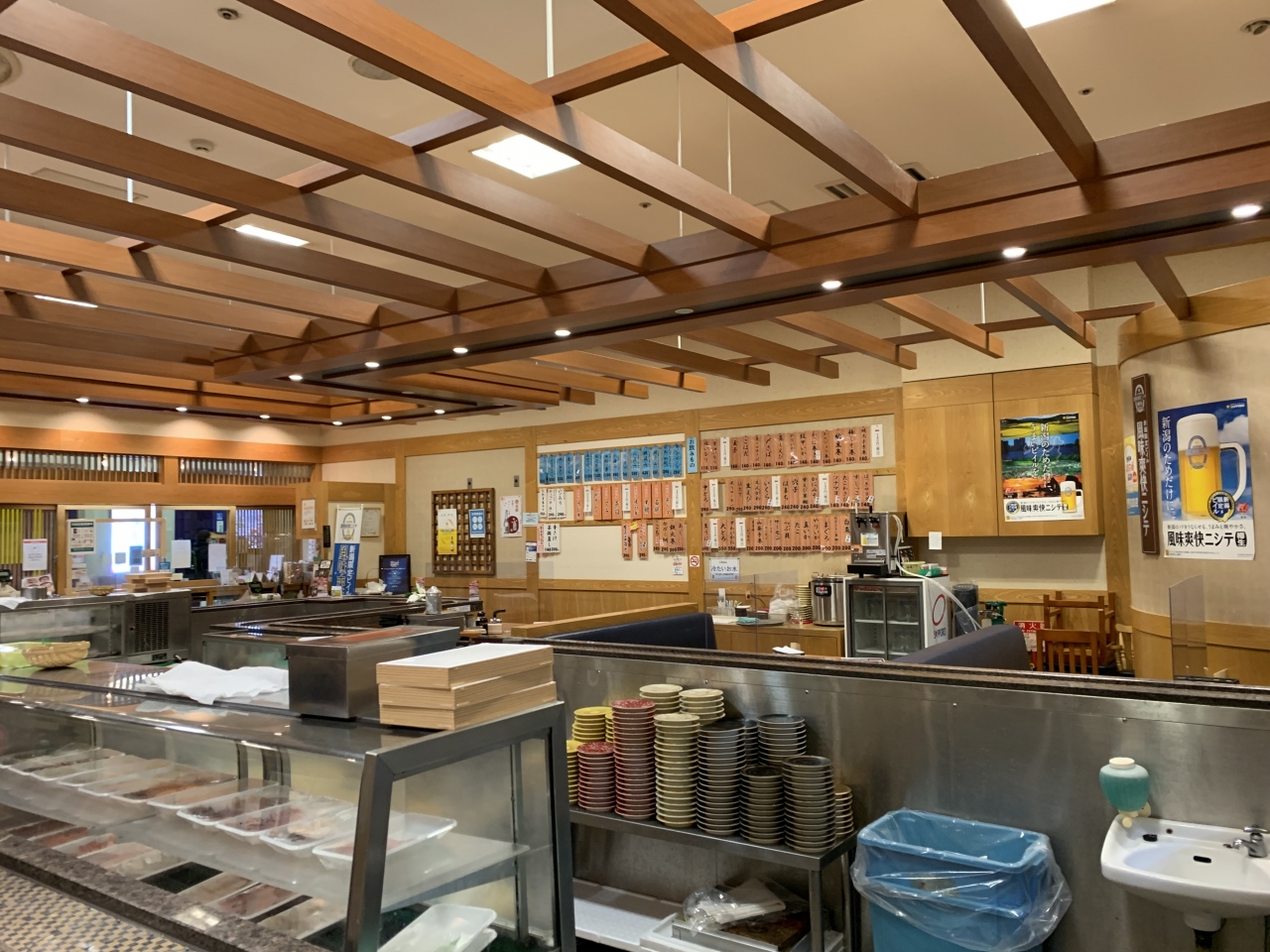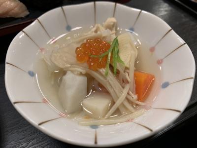 JR新潟駅の駅ビル”Cocolo東館“にあるお店です。開店は朝9:00なので、朝食で寿司が食べられます(お酒も)。寿司の前にビールのつまみで「いごねり」(日本海でとれるいご草を使ってつくる佐渡の郷土料理)と「のっぺ」(新潟の代表的な煮物の家庭料理)をオーダー。そして寿司は「中生握り」…1000円です。朝から寿司で、寿司大好きの妻は上機嫌。これで気持ちよく観光へ向かえました。
