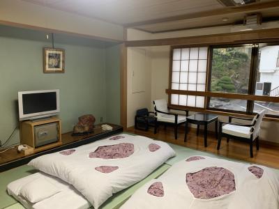 湯岐温泉に2軒しかない旅館のうちの一つです。以前、もう一つの和泉屋旅館に泊まり、泉質とぬる湯が気に入りましたので、今回はこちらに泊まってみようということで。建物・設備は昔ながらの旅館という感じで、今でいうなら民宿レベルです。温泉は名物の岩風呂、混浴で女性は湯あみ着がレンタルできます。広くはないので人数が増えるとちょっと辛いですね。貸切の家族風呂であれば落ち着いて浸かれます。料理は、朝夕少な目の湯治料理でしたが、私たちには質・量ともにちょうど良かったです。とにかく安かったし、岩風呂と貸切風呂でたっぷり浸かれましたので良かったです。もう少しゆったり温泉を楽しむなら、少し料金は上がりますが和泉屋旅館の方が良いかもしれません。