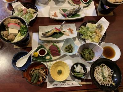 秋山峡の奥地、中津川に湧く切明温泉の宿です。”リバーサイドハウス”という名が示すように、ホテルほどの設備やサービスではなく、ペンションや山小屋というほど小さくないので、その中間というイメージでしょうか。温泉は川を掘ったら湧いてくるということで自然の温泉を作って水着で入ることができます(寒かったので見るだけにしました)。宿の温泉は川沿いの景色の良い(紅葉シーズンでしたので見事でした)大きな露天が貸切で使えて気持ち良かったです。食事は、平家の落人の里ということなので、他の似たようなところと同じようにヘルシーな山里料理でした。このかなりの山奥で、温泉と食事は期待以上で、料金もお手頃でしたのですごく満足できました。