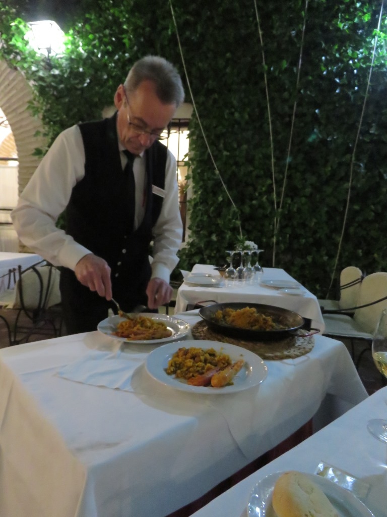 メスキータのすぐ傍にある立地は絶好のレストランです。パラシオ(宮殿風の邸宅)のパティオにテーブルが並び、雰囲気は良いです。観光客向けの感じで、スタッフの対応は悪くはありません。サラダは美味しかったのですがパエリアがダメでした。あまりにも塩辛すぎます。パエリアはスペイン各地で食べてきましたが、日本に比べれば味が濃いのは普通としても、ここのは異常に塩辛く食べ切れずに結構残しました。