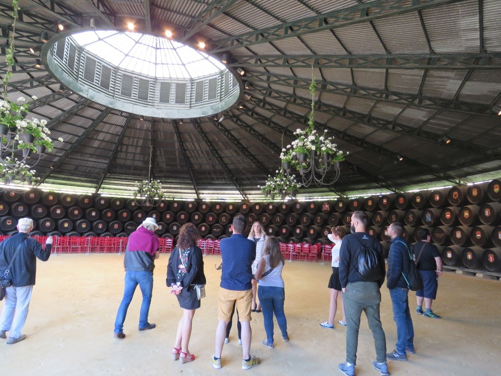 ヘレス(シェリー酒)の代表銘柄「ティオ・ペペ(TIO PEPE)」で知られる、大聖堂の近くのボデガ(ワイナリー)です。特に予約はせず飛び込みで見学できました(有料)。ミニトレンに乗り醸造庫や樽貯蔵所などを巡った後は、豪華なタパスとともに試飲ができます。