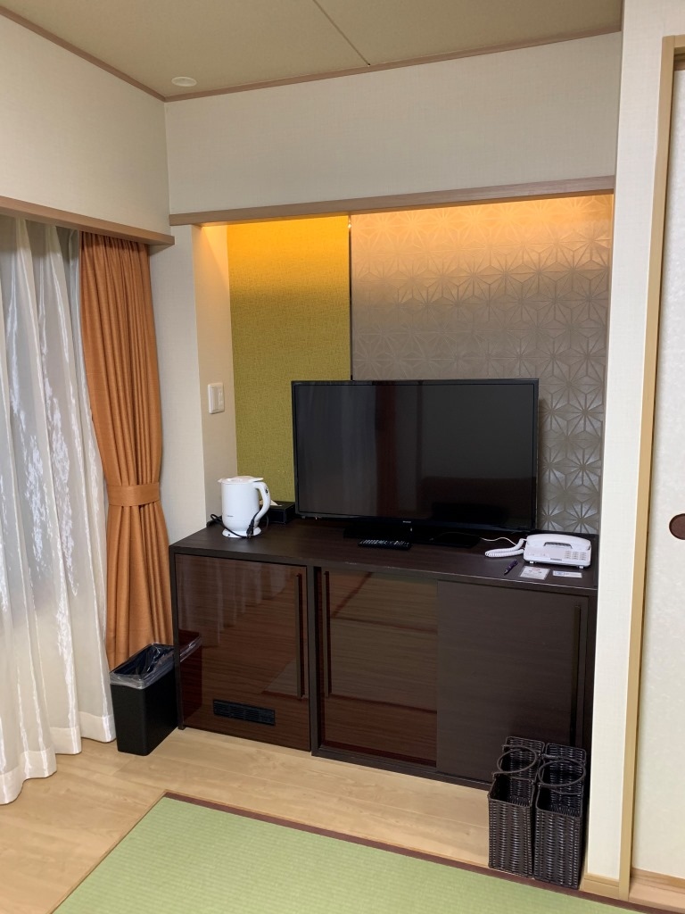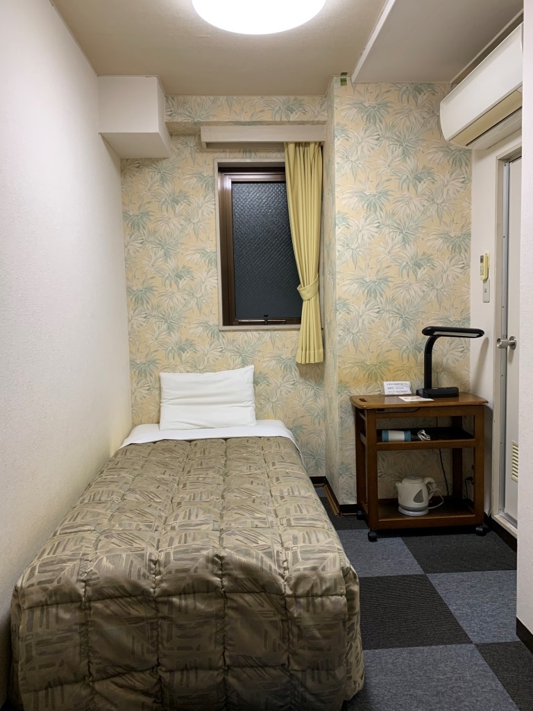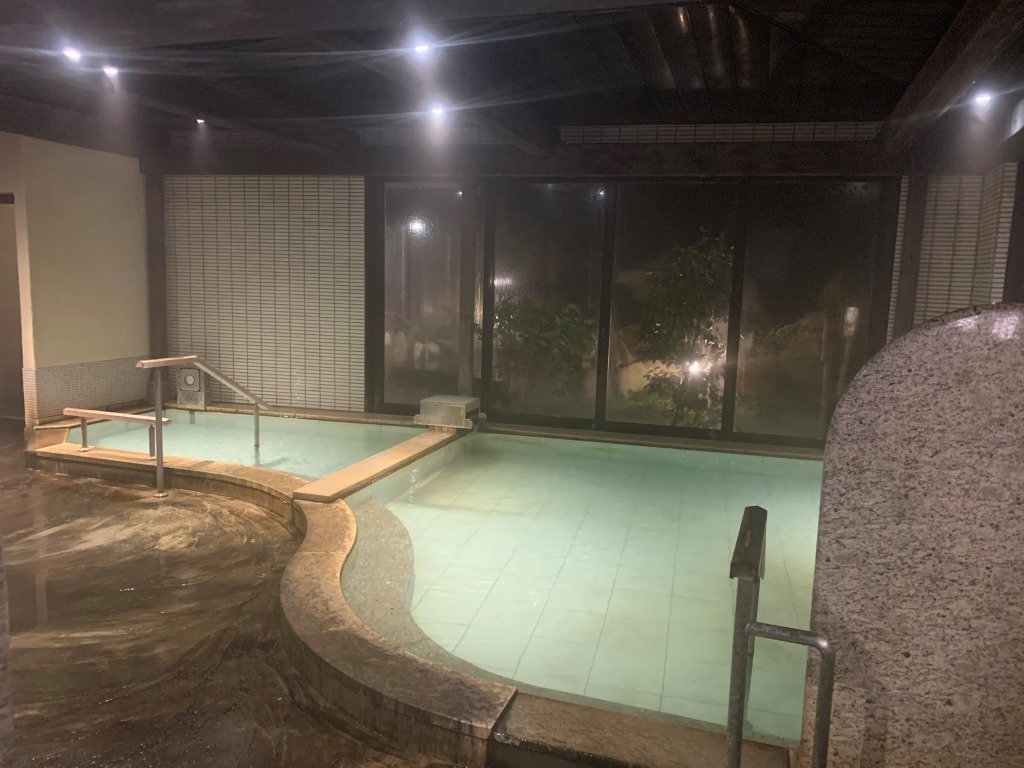 温泉街から近い、国道135号(山側)沿いのビジネスホテルです。駅からは少し遠い(約600m)ですが、車なら無料駐車場が道路の向かいで便利。1階が雰囲気の良い居酒屋で、銭湯の「松原天神の湯」が近いです(現在はコロナ規制で入れず)。食事処が多いですが最寄のコンビニは歩いて5分かかります。設備・客室はちょっと研修所チックですが、バスの蛇口からは温泉が出ます。色々書きましたが、この料金なら充分満足できました。