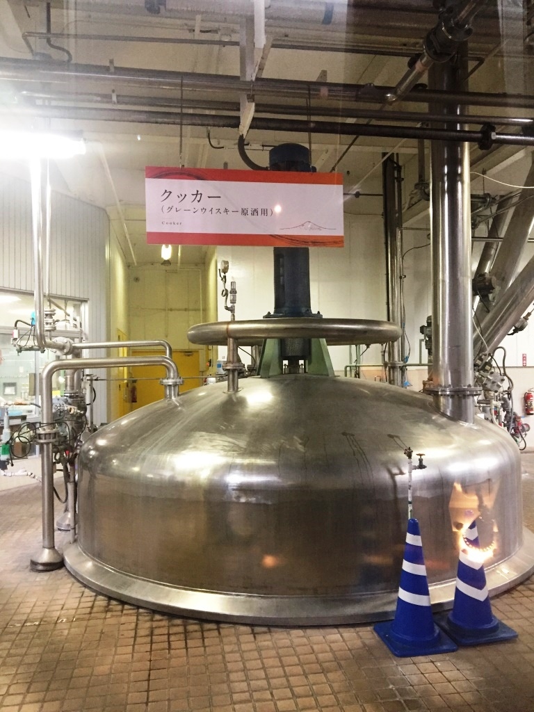 キリンウイスキー富士山麓を醸造している蒸留所です。2人であれば、体験ツアー(無料)は予約無しで大丈夫でした。この部屋で少し待って、見学&試飲ツアーのスタート。十数人のグループに、説明員が付いて案内してくれました。最後はもちろん試飲タイム、舐める程度の両ですが、富士山麓シグニチャーブレンドと樽熟原酒50度、柿の種のチーズ味のおつまみ付きで賞味できました。ウィスキー好きには外せないスポットです。