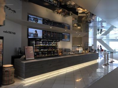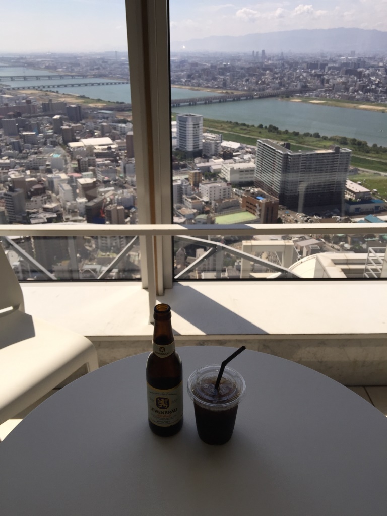 スカイビルの空中庭園にあるカフェ&バーです。西側の淀川のリバービューと、南側にはキタの高層ビル群のシティービューを望みながら、カフェや世界のビールが楽しめます。こういうシチュエーションが大好きな外国人で賑わっていました。