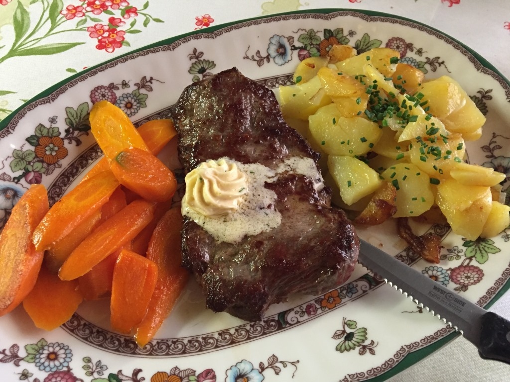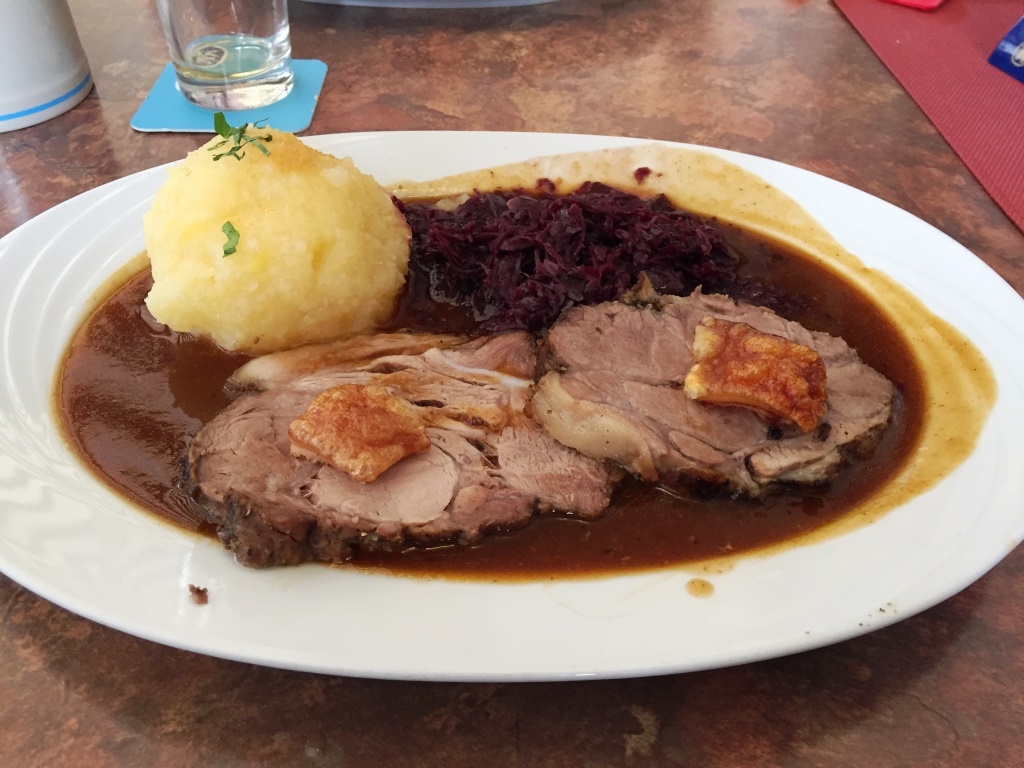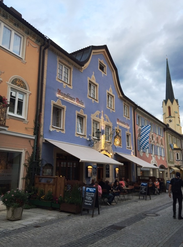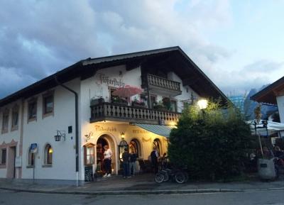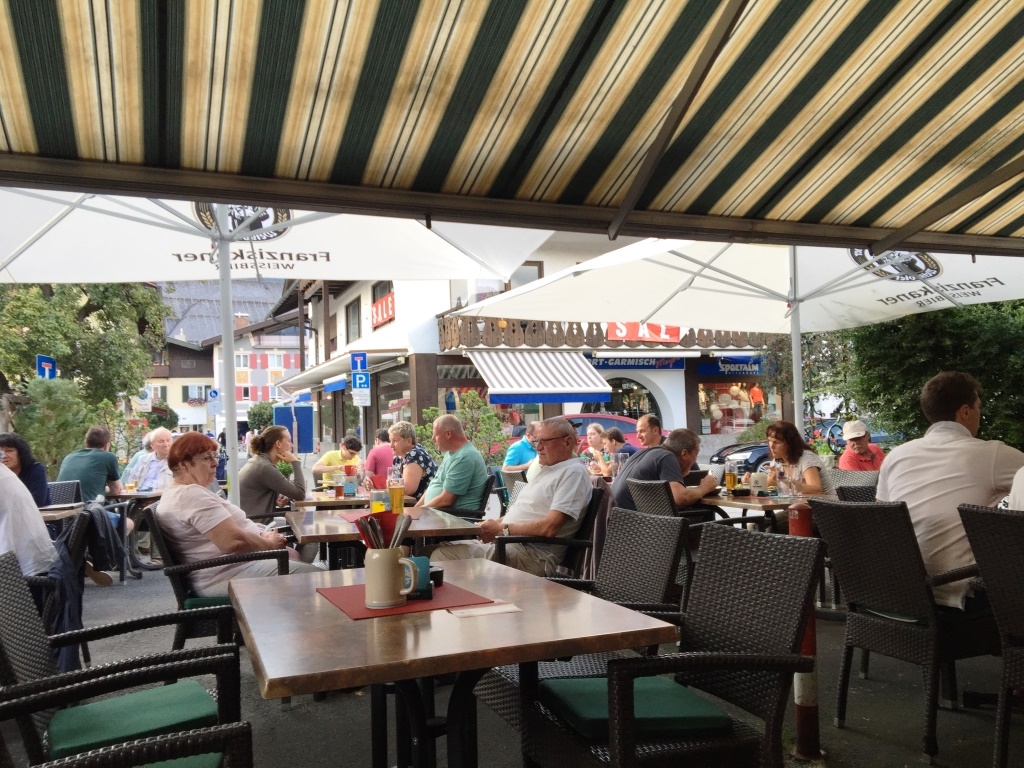 パルテンキルヒェン街の目抜き通り「ルートヴィヒ通り」に面する、街の観光ついでにも便利なレストランです。ビールにシュニッツェルとステーキ、デザートにカルターフントをいただきましたが、どれもシンプルに美味しいものでした。そこそこ人気があるようで、テラスも店内も多くのお客さんで賑わってました。