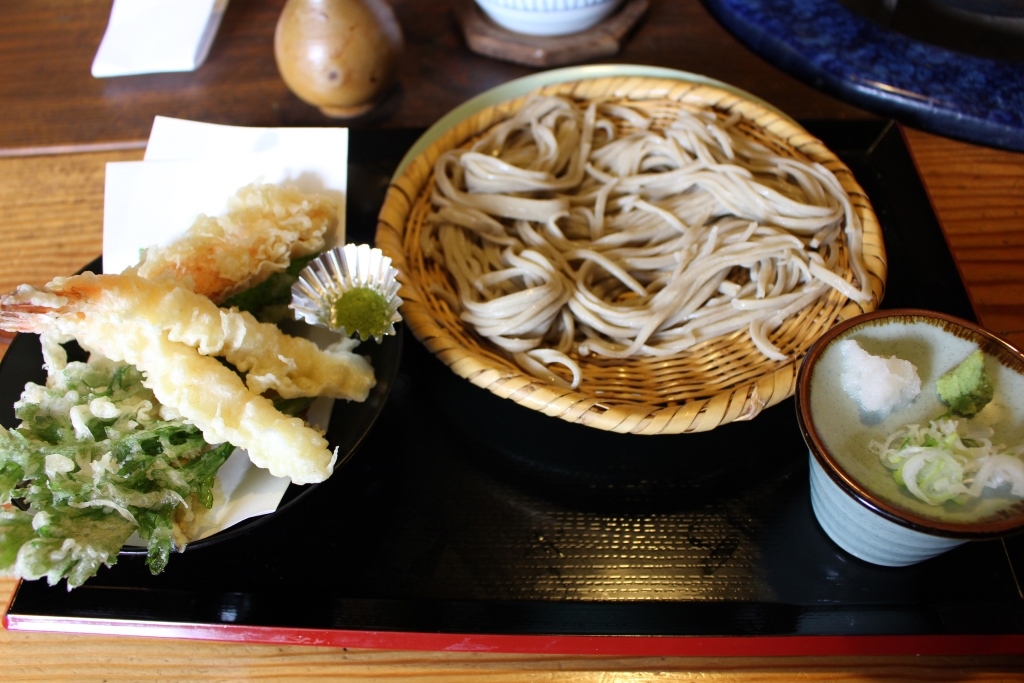中社周辺の蕎麦屋は激混みでしたので、車で少し移動し宝光社地区のこの店にしました。広くて和モダンな店内に、池や囲炉裏があって雰囲気は良いです。戸隠産100%地粉で、そば作りの工程”水回し~そば切り”まで機械は使わず完全手打ちとのこと。天ざると普通のざるを注文、盛り方は戸隠特有の「ぼっち盛り」です。そばは普段そんなに食べないのでテイストはよく分かりませんが、コシ・味・香りは力強い気がしました。