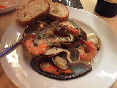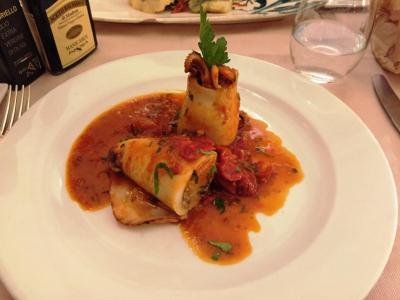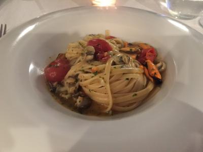 大聖堂から北へ路地を3分くらい歩いた奥にあるレストランです。某口コミサイトで好評価、カジュアル&リーズナブルな感じだったので選びました。メニューは英語併記です。メニューはシーフードを中心にチョイス、食後酒のグラッパまでしっかりいただいたのでちょっと値がはりましたが、雰囲気とサービスも良い店でしたので満足です。
