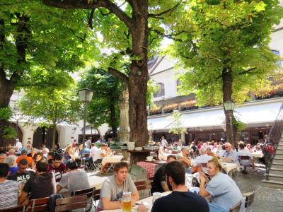 国立のビール醸造所が直営しているビヤホール。さすがビールの国ですね。16世紀にバイエルン公により開設された後、19世紀に建て替えられた現在の建物も雰囲気抜群、ビールはもちろんビールのお供も充実しており、バンドの生演奏もあってビールで陽気に盛り上がるには最高の場所です。夏のバカンスシーズンは建物も中庭もお客さんで溢れていました。
