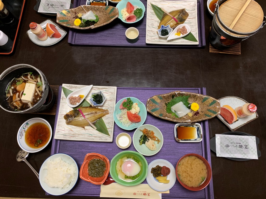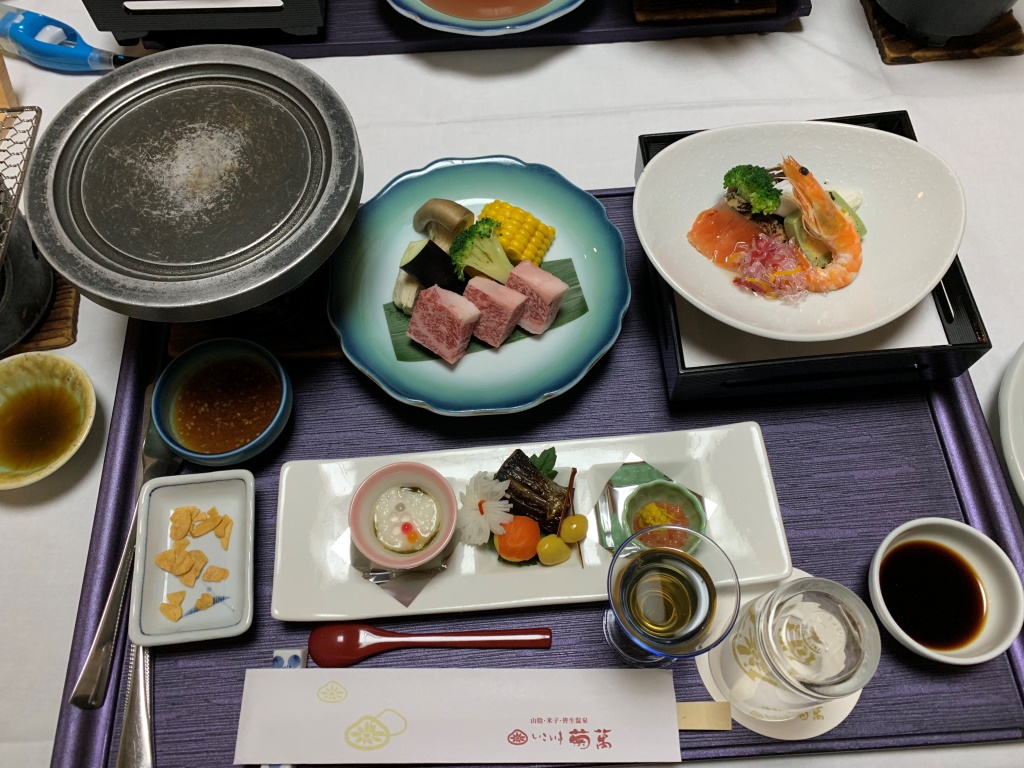 銀山温泉街に建つ旅館です。バイクでの訪問でしたが、歩いて5分ほどのシャッター付車庫に停めさせてもらえたのは良かったです。建物設備は昭和な感じで古く、部屋はトイレ無しです。風呂は小さめですが温泉の泉質は良く、食事は平均的です。サービス含め総合的には民宿並と考えると料金は高いです。しかしながら、「銀山温泉」というブランドが特異な相場を生み出している構図なので、コスパの感じ方は人それぞれですかね。