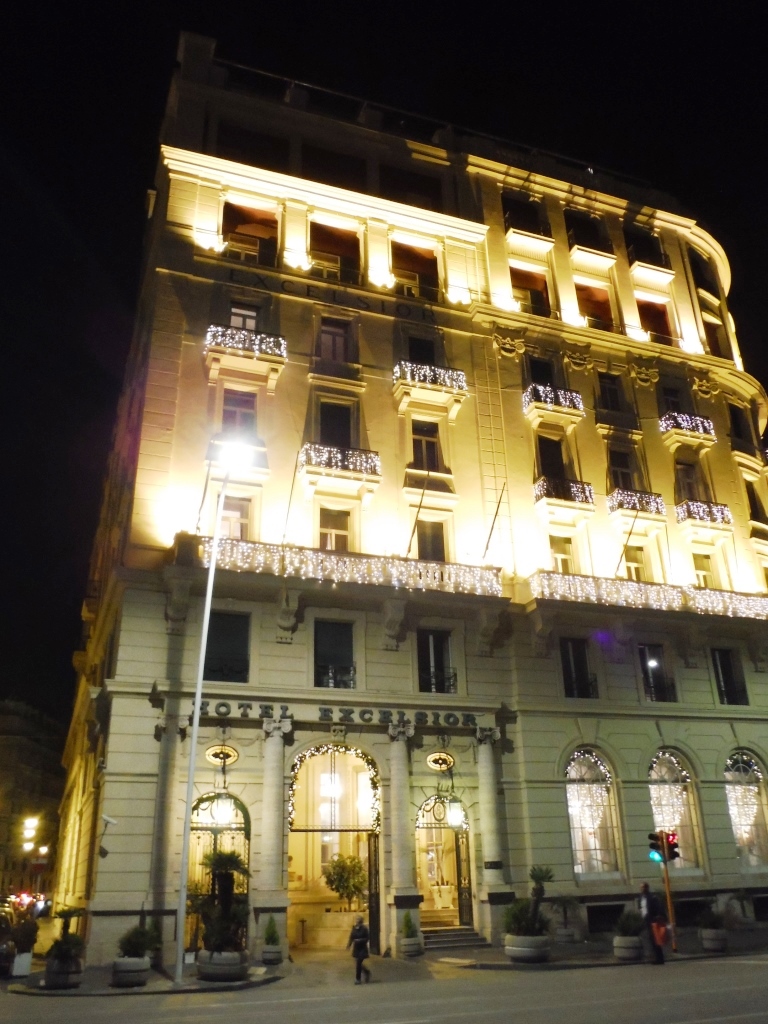 ナポリの中でも比較的治安が良いと言われるサンタルチア地区の海に面したホテルです。ちょっと高級なホテルが並んでいる海沿いのパルテノペ大通りに建つホテルのうちの一つです。卵城は至近、王宮やヌーヴォ城は歩いてもそう遠くありません。スパッカ・ナポリまでは結構歩きますが、徒歩圏内ではあります。部屋はスタンダードでも広さは充分、オーシャンビューでは無かったですが、建物の間から海は見えました。オーシャンビューなら眺望は良いと思います。朝食は野菜もあって品数は充実してました。空港までタクシーを呼んでもらいましたが、ちゃんとしたタクシーで所定の料金でした。(空港からホテルのタクシーはチョットぼられました)特別良いところは無かったですが悪いところもなく、全体として、料金に見合った設備・サービスのホテルだったと思います。