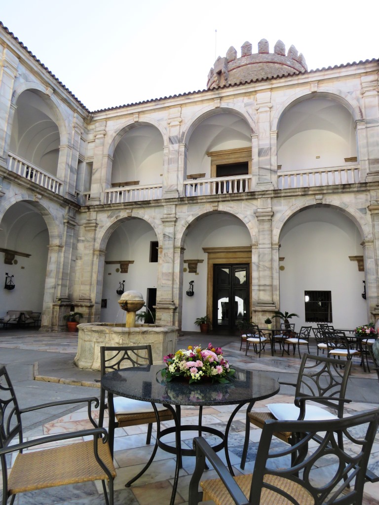 15世紀のアラブの要塞跡に建てられたアルカサルを改装したパラドールです。旧市街にあるこのホテルは街の観光にも絶好の立地です。シンボルの塔の部屋に泊まれなかったのは残念ですが、中世の様々な様式で飾られた古城は歴史ある町に泊まる趣が抜群に感じられました。