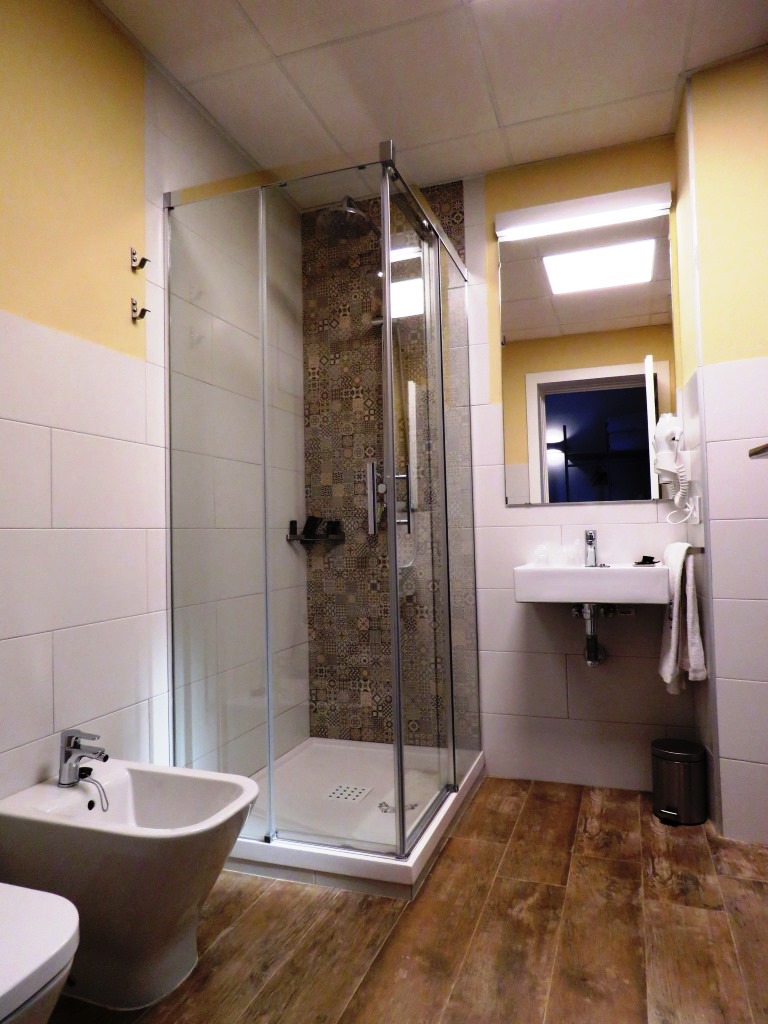 ポンペイ遺跡の東の入口(円形競技場側)に近いホテルです。お店が並ぶローマ通りに面して小さなゲートがあります。駐車場は斜め向かいの公共駐車場で、宿泊者は無料になります。市街地にあるのでそう大きくは無いですが、設備は必要にして充分、フロントの対応も良く朝食ビュッフェの種類と質もまずまずで、この料金ならコスパは非常に良いと思いました。