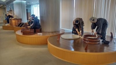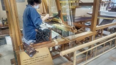 西陣織に関する展示に加え、大きな機織りの機械を実際に動かしているところや、カイコから糸を紡ぎ取るところなども見られます