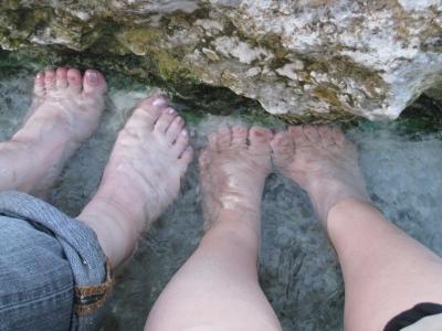 あたしたちも裸足になって、いざ温泉へ(*´∀`)ノぎゃー!足がかじかむ...