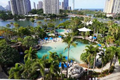高層ビルが立ち並ぶゴールドコーストの中で広い敷地を有するリゾートホテルタイプのホテルです。サーファーズパラダイスからは少し離れていますがトラムで移動すれば苦になりません。敷地内には海水を引き込んだプールがあり、砂浜になっていて魚が泳いでいるなど変わった趣のプールでシュノーケルのレンタルもありました。家族づれにもカップルにも超お勧めのホテルです!!