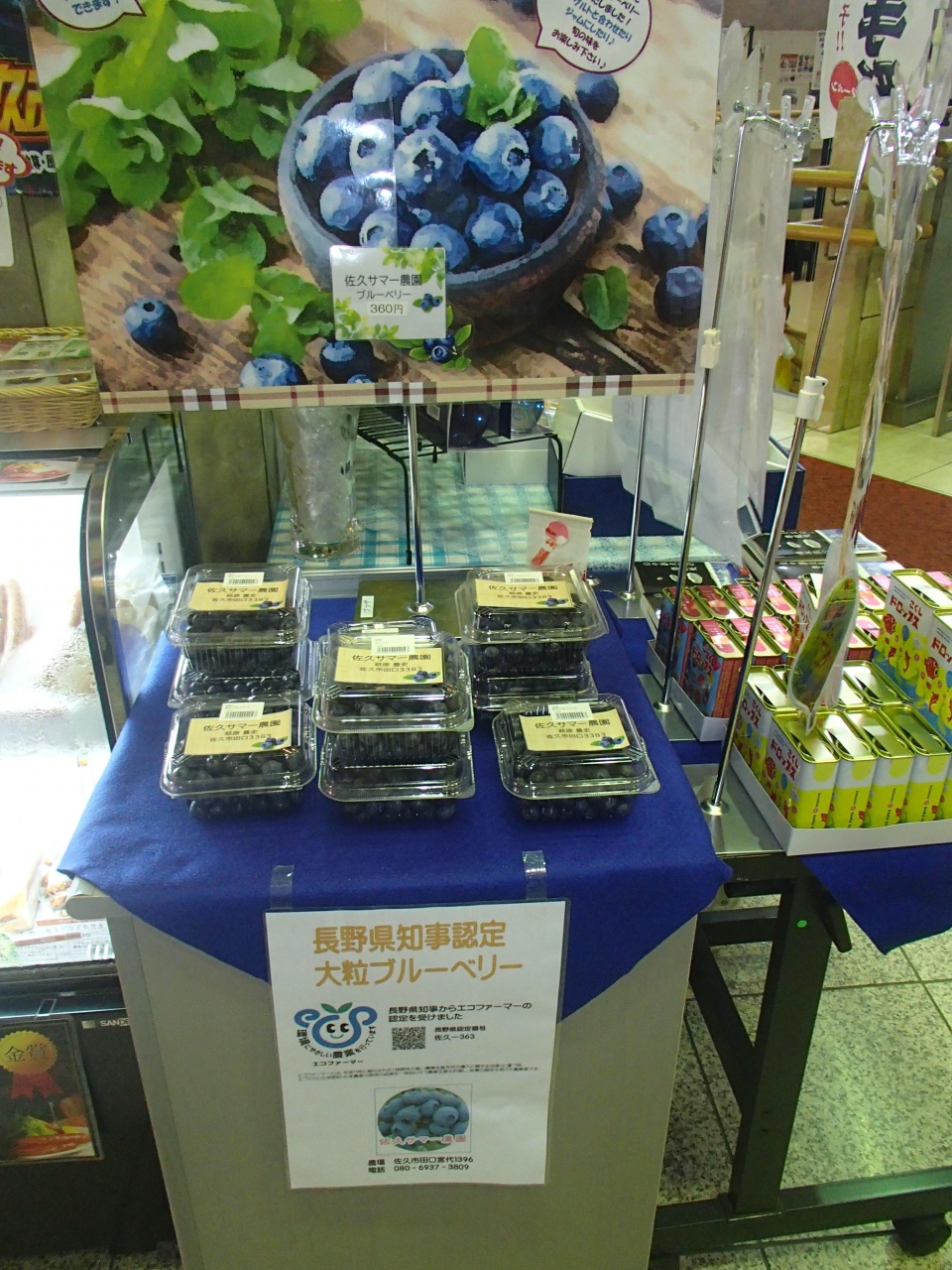 佐久平駅の構内にあるおみやげ屋さんです。通常この手のお店はあまり期待しないほうが良いという印象がありますが、このお店は地元の珍しいものが多くついついあれこれ買ってしまいます。今回も地元産ブルーベリーを買いました。