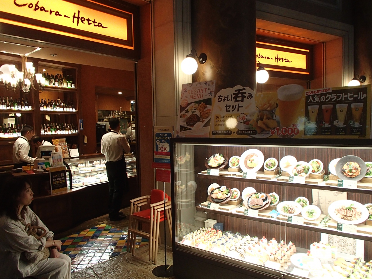 ヴィーナスフォートの雰囲気を楽しみたければ絶対に通路側の席が良いでしょう。店内のインテリアは特別変わった様子はないので通路側で刻々と変化する街並みの雰囲気を楽しんでください。味やサービスは可もなく不可もなくごく普通です。