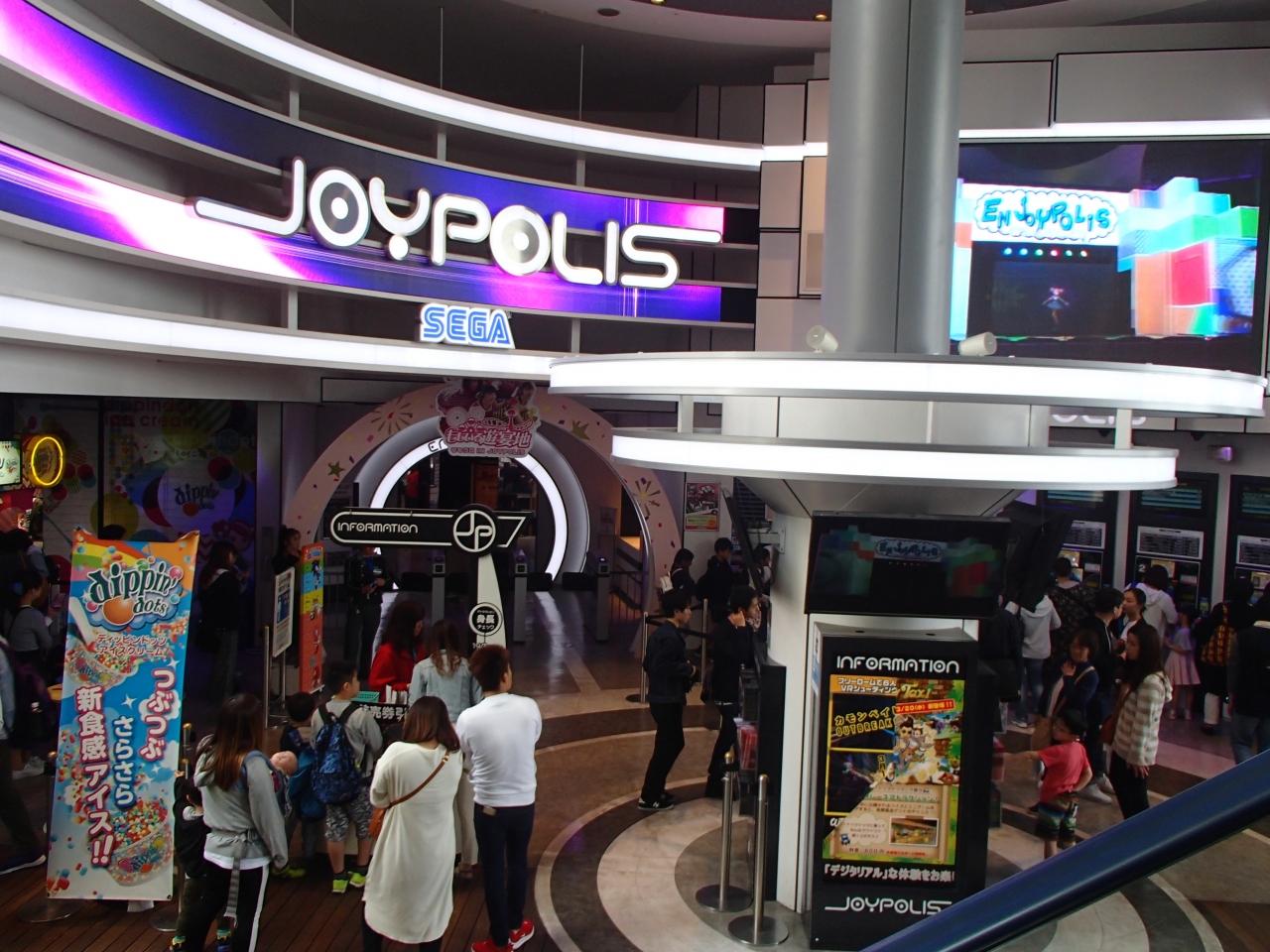 ヴィーナスフォートの1階にあります。混雑時には購入前に席取りが出来ないよう規制線が張られスタッフにてレジに並ばされます。購入後、人数を確認され席に案内する流れが徹底されていて不公平感なく過ごす事が出来ました。とても良いシステムだと思います。。
