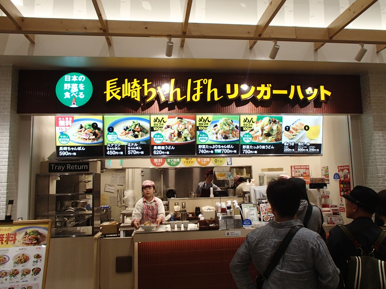 アクアシティーのフードコートにあるお馴染みのチェーン店です。他の店は判りませんがいつもちゃんぽんや皿うどんの注文時、肉抜き注文を受けてくれます。レシートにも(肉▲)と表示されて肉が嫌いな私にとって、とても親切で助かっています。