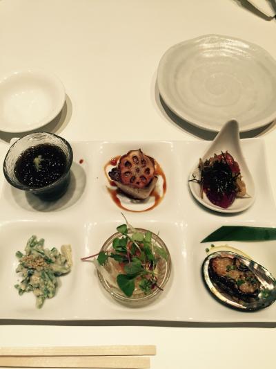 器や盛り付けにフレンチを思わせるオシャレさがあります。ワインやシャンパンがよく似合う雰囲気です。