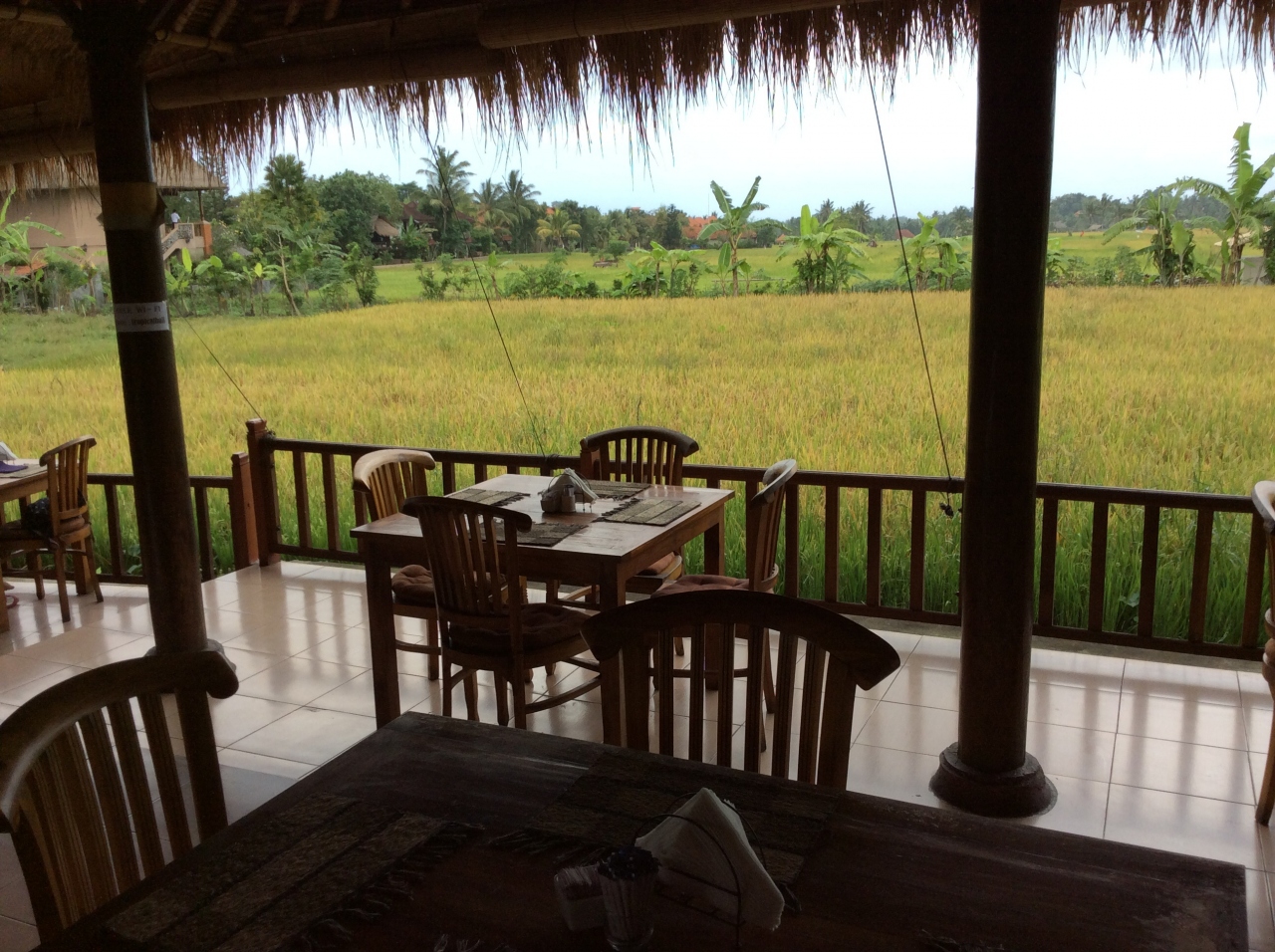 こちらのお店の前を何回か通っておりましたが、いつも欧米人の客で一杯。表どおりから覗いたら、ライスフィールドが一面広がっていて、とても寛げそうに思いました。