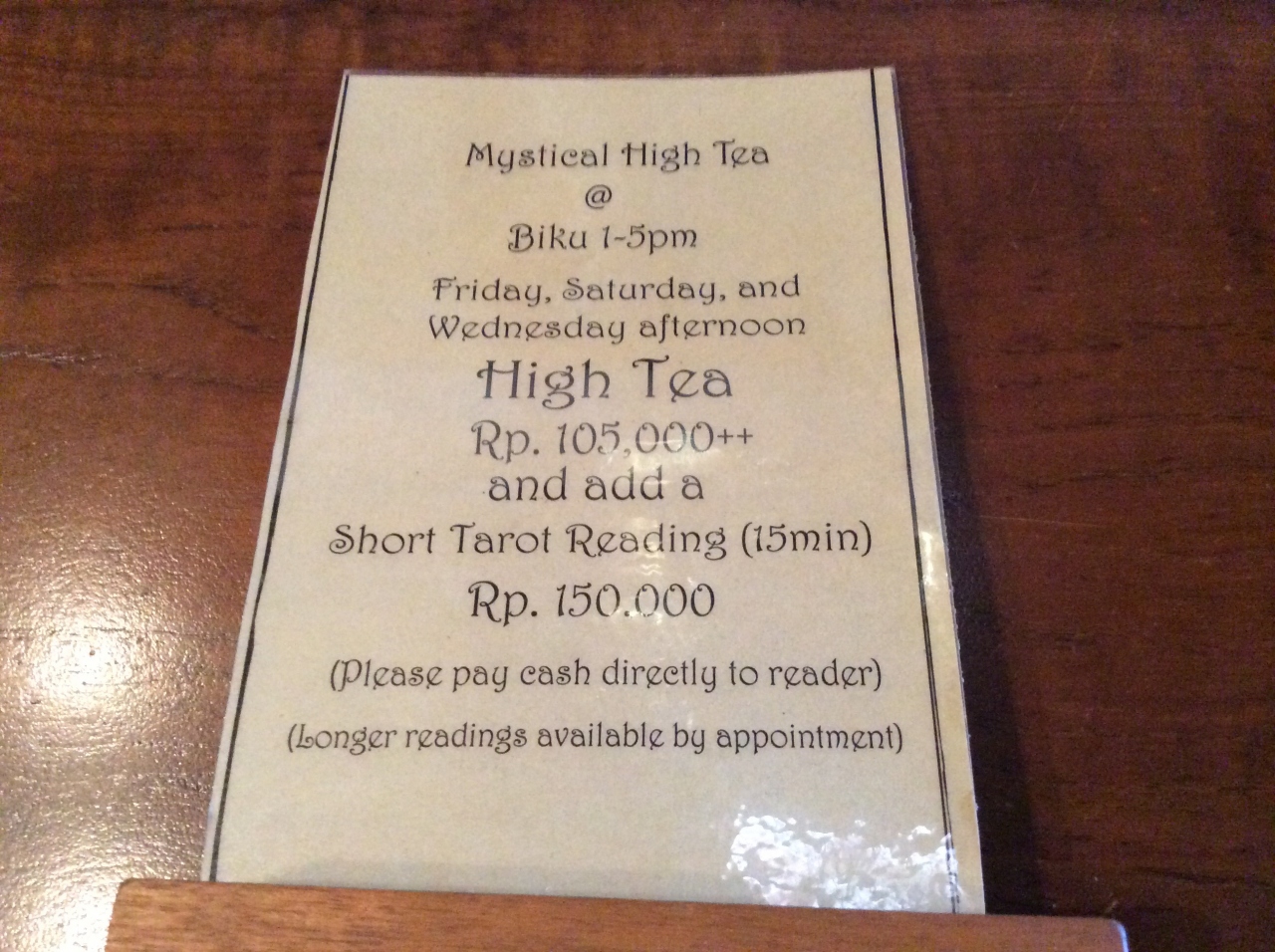 お店の一角には、占いコーナーがあります。- 旅行時期