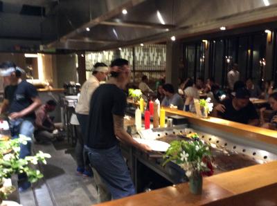 壁で囲まれた空間に、結構な数の客がいるので、道路側の壁はオープンにしたほうが開放感がでて良かったかも。