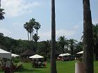 『初島アイランドリゾート』は、その名のとおり初島内にあるアジアンリゾートをテーマとした施設で、海の見えるお風呂、テント風バンガロー、プールなどが併設されています。他には芝生の広場にテーブルやハンモック、食事の売店があるくらいなのですが、ここの雰囲気が抜群!本当に東南アジアのリゾート(ホテルの庭)にいるような景観です。大それたアトラクションはないけど、潮風に吹かれながら椰子の木の下でハンモックに揺られる時間は、とても気持ちよかった~!こうゆう施設、ありそうでなかったかもしれない。