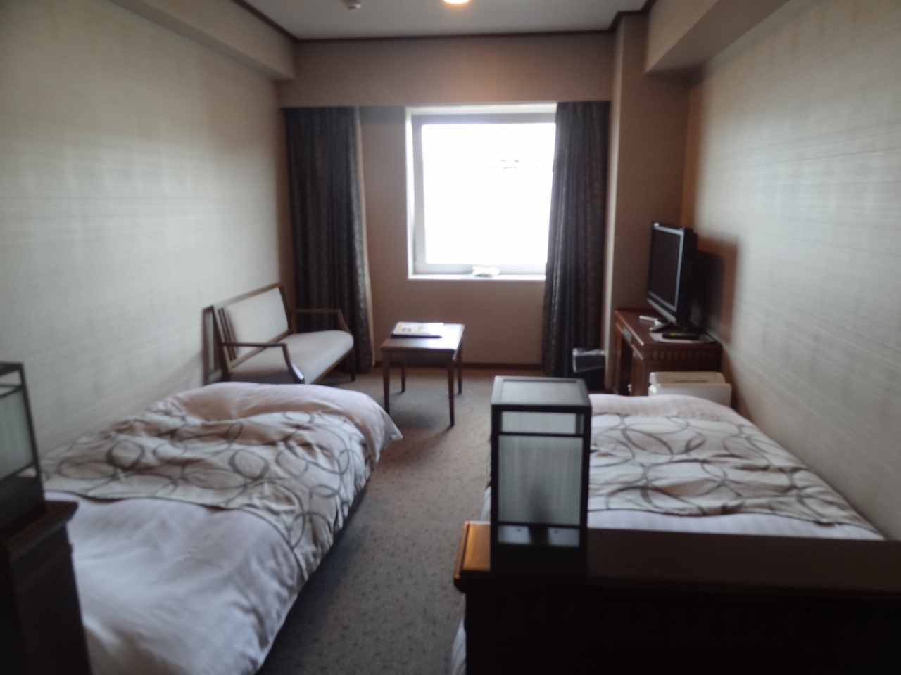 1126号ツイン、南側道路に面したお部屋でしたがとても静か。部屋もバスルームも広めで窮屈さはなく、シックで落ち着いた雰囲気、居心地がいいです。朝食バイキングも和洋中心で品数多く、美味しくいただけました。