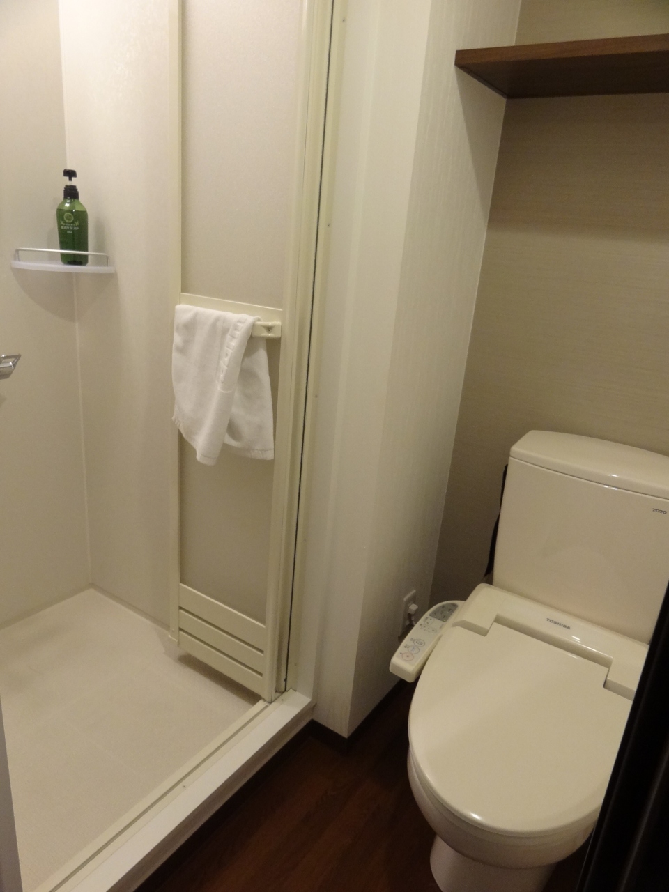 スタンダードツイン603号室、小樽駅の見える中央通りに面した部屋。バスタブなしシャワールーム・トイレ付。小さいシングルベッド2台、部屋は思っていた以上に広く感じました。セイフティボックスなし、室内照明が暗い、クローゼットの類は簡易なもので長期滞在にはあまり向かないかも。防音はしっかりしていて周囲の音は全く気になりませんでした。