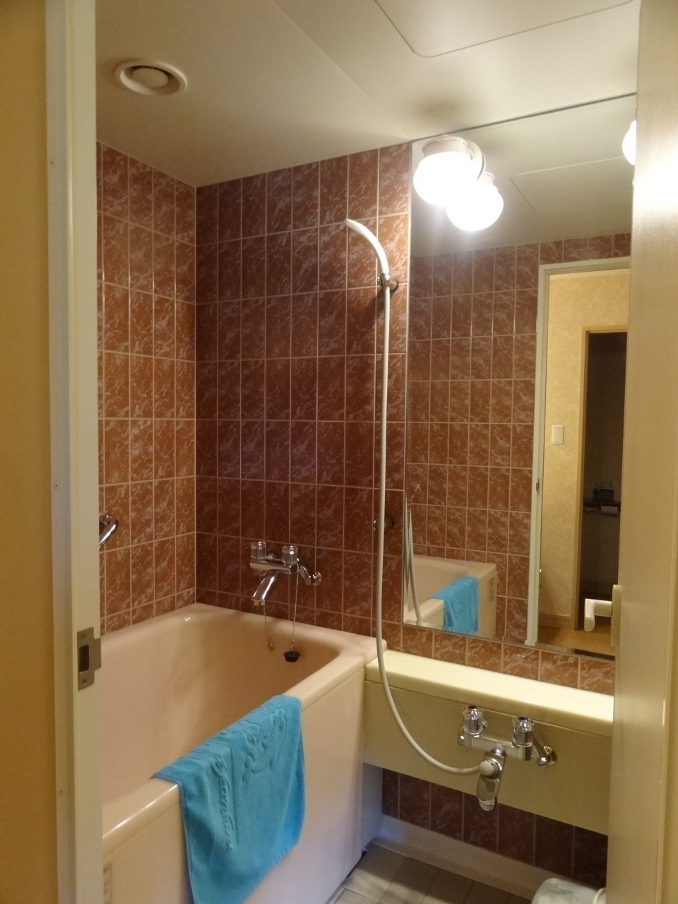 ?大浴場はロッカーが30くらい、洗い場7つ→洗い場空き待ちの列ができてて、裸で待つのは嫌でした。