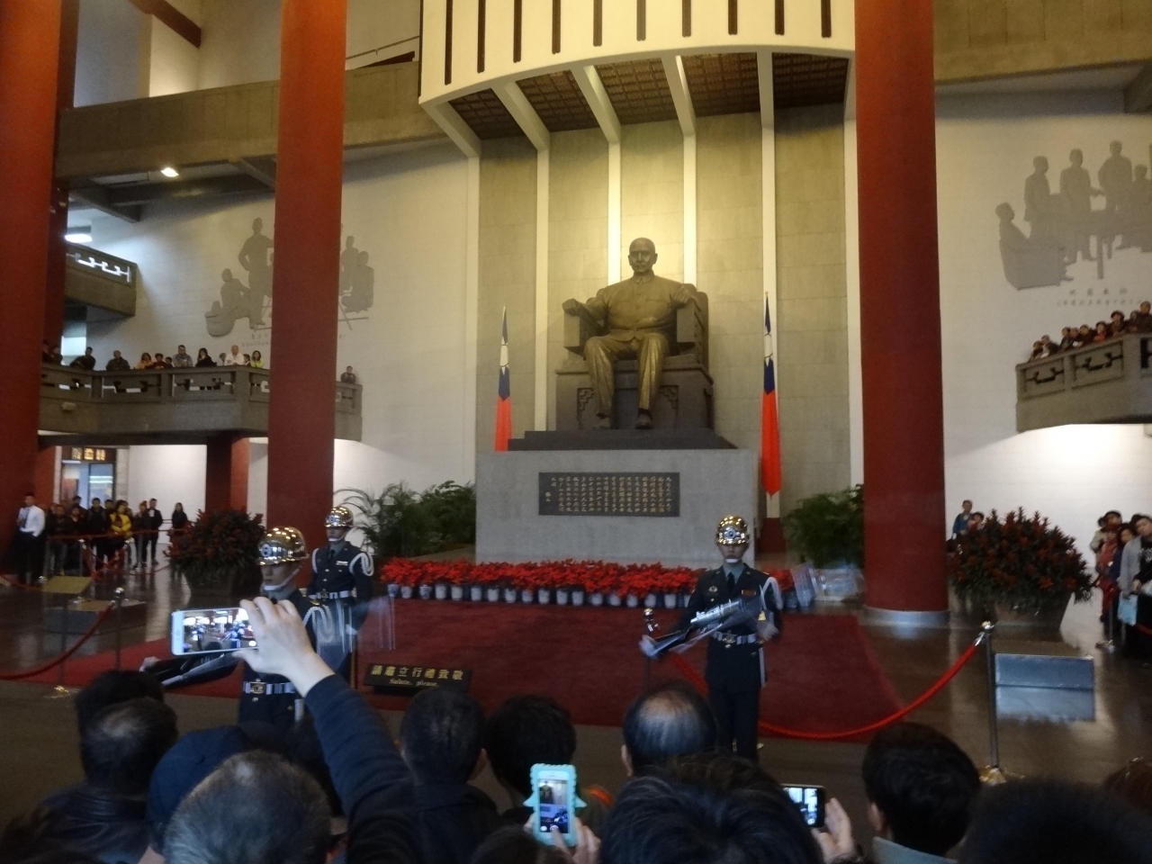 台北で守衛兵交代式が見れるのは国父紀念堂・中正紀念堂・忠烈祠の3か所ですが、ここは2階にあがる階段の途中(踊り場)から交代式を見ることができ、式の様子を唯一上から眺めることができるスポットでした。(大きな柱が視界を阻むので、いい場所を確保したければ式の前に行って陣取ったほうがよさそうです)