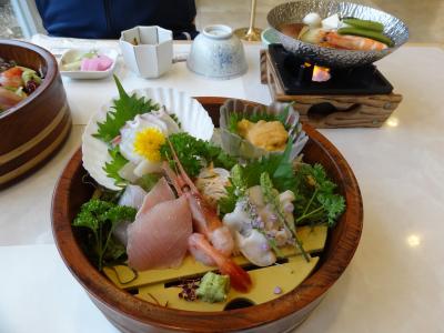 食事会場は「グランシャリオ」「プレミアム」と二つあり、私たちは朝夕ともにプレミアムバイキング。和洋中、見た目も綺麗で手の込んだお料理で、品数多い。ビーフステーキとトマトのジュレが美味。