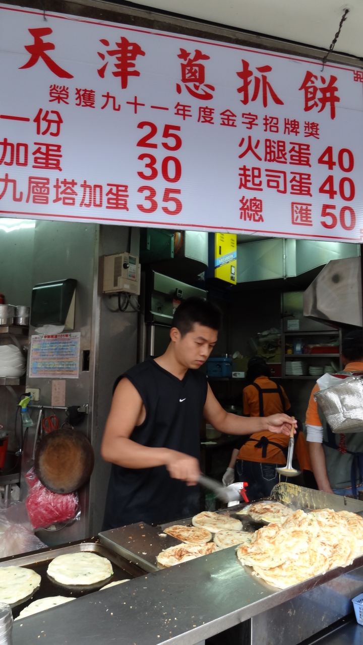 永康街にある屋台のようなお店。座席はありません。丸い小麦粉団子のようなものを鉄板の上で焼きながらくるくる‥生地がパイみたいに重なったようになって‥不思議。ふわふわの生地、ネギとゴマの風味がほんのり。ウスターソースのような・でもそうでないソース、お好み焼きとも違う。すごく美味しい!何故かまた食べたくなる。