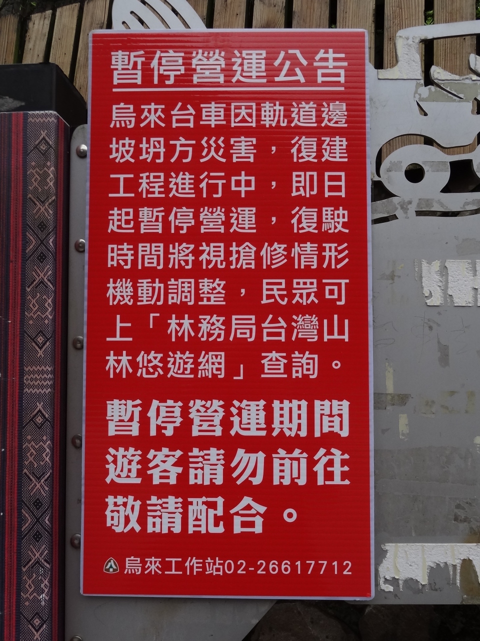 烏來には過去数回行っていますが雨天の日ばかりで、まだトロッコに乗ったことがありません。天気が悪くなかったのでトロッコに乗りたくて行ったのに‥まだ運休中でした。昨年6月の大雨災害で運休中とか、もう半年経つのに‥いつ運行再開になるんでしょうね。