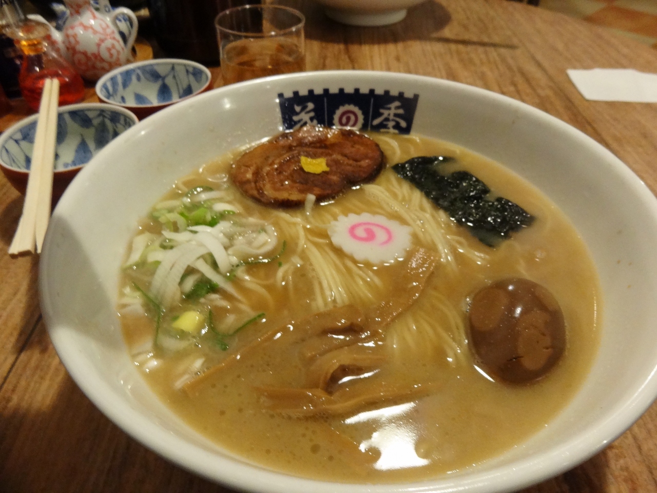 麺はストレート、スープは醤油の濁り系。魚介の風味が利いてるスープは濃厚、麺に良く絡みます。口の中で脂とろける柔らかいトロトロチャーシュー、黄身の濃い煮卵‥細部までこだわってます。野菜は自家製とのこと、辛みと香りが強い葱は粗めに刻んでラーメンの中に入ってます。