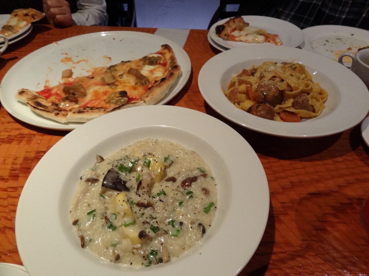 イタリアンなのにちょっと和風っぽい味付けの料理があったり‥味は好みで良し悪しに分かれるかも。‘石釜焼ピッツア’と‘栗とゴルゴンゾーラのリゾット’、サービスのパン(フォカッチャ?)がすごく美味しかったです。これはまた食べたい。
