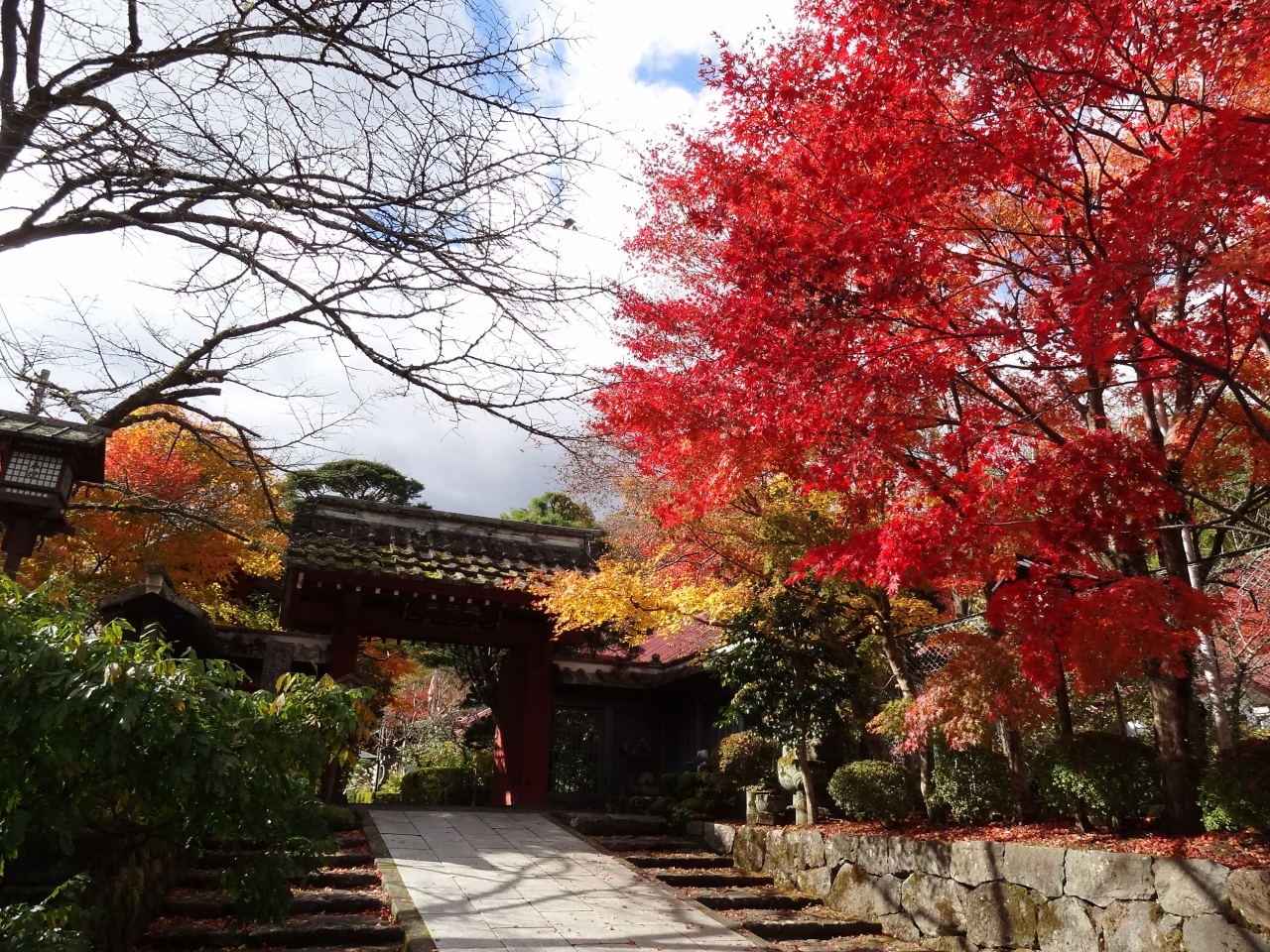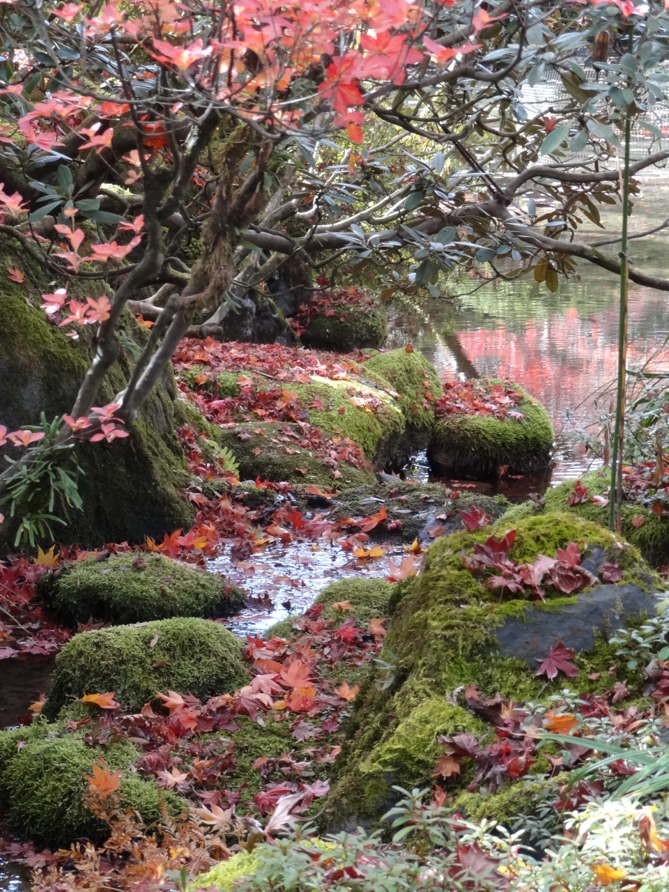 赤や黄色の紅葉はまだ見頃!中央にある池に紅葉が映りこむ風景もなかなか綺麗。落葉の目立つ部分もあったけど‥緑の苔の上に散らばる赤い落ち葉、風情があってまた良い。