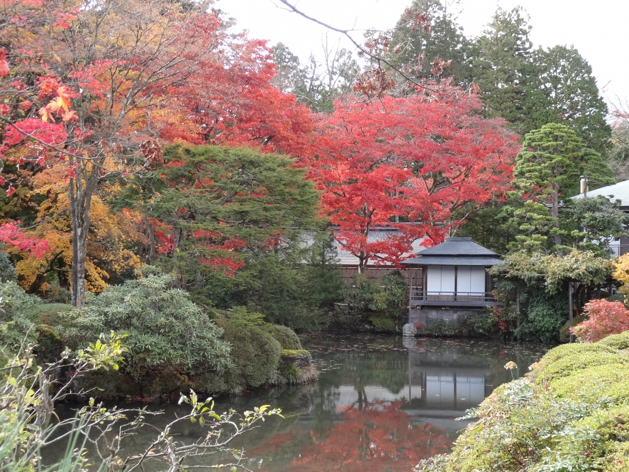 山内は紅葉の見頃で三仏堂前は人だらけ、「逍遥園もきっと人でいっぱいなんだろうな‥」と思っていたけど‥人の姿はまばら、予想外。