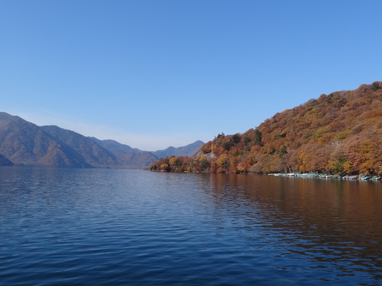 2013年10月31日再訪。紅葉シーズン終盤で落葉しはじめ、ボートハウスから眺める紅葉はやや褐色がかっていました。それでもここからの中禅寺湖の眺望は素晴らしく、秋ならではの風景を堪能できました。昼近くになると中禅寺金谷ホテル前の駐車場は満車に、午後になると逆光気味になるので午前中の訪問がお勧めです。
