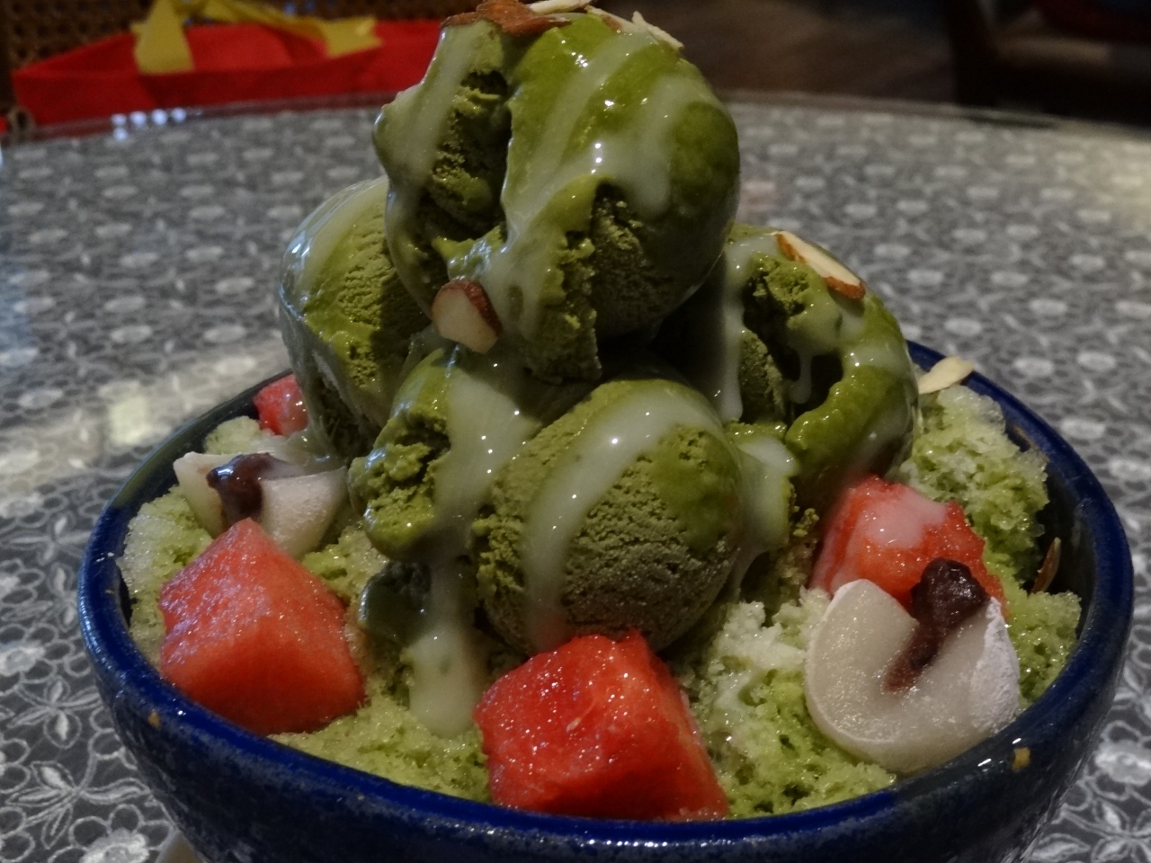 3分の1位食べて全部混ぜ混ぜ。中にナッツとかお餅のようなものとか色々入っているかき氷は初体験、特にナッツ食感がとても良くて‥あ~美味しかった、また食べたい!- 旅行時期