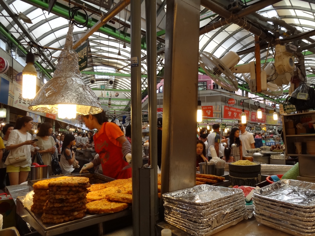行ったのは祝日、昼間から友人とおしゃべりしながらマッコリとピンデトッを味わう人で賑わっていました。観光とはちょっと違うソウルの雰囲気を味わえたのも、また良かったです。ピンデトッ 4,000W。日本語は通じません。- 旅行時期